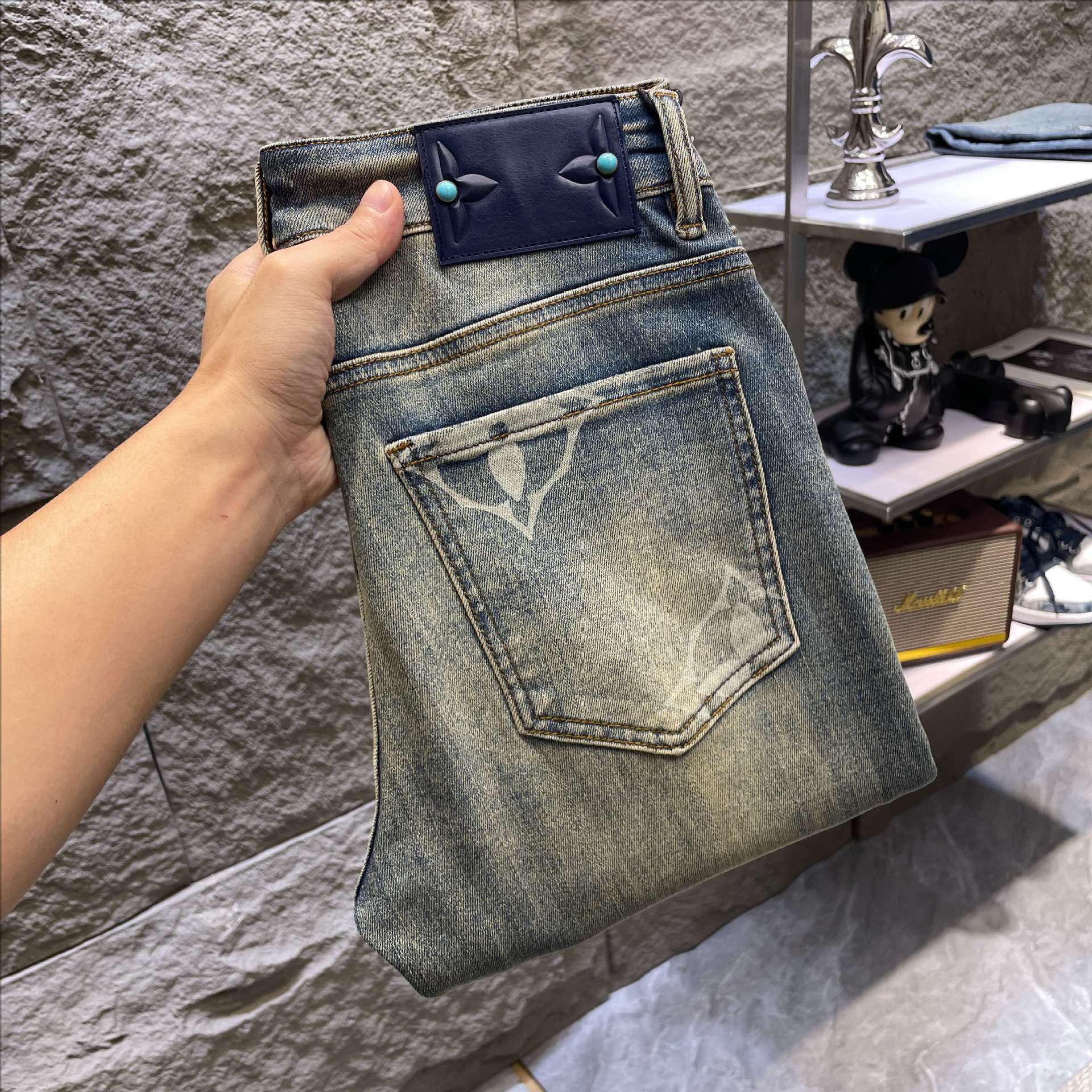 外国貿易のヨーロッパの商品の2024ハイエンドのジーパンの男性の軽くて豪華なカジュアルな小さい足のズボンのファッションの修身のファッションのブランドの夏の薄い金
