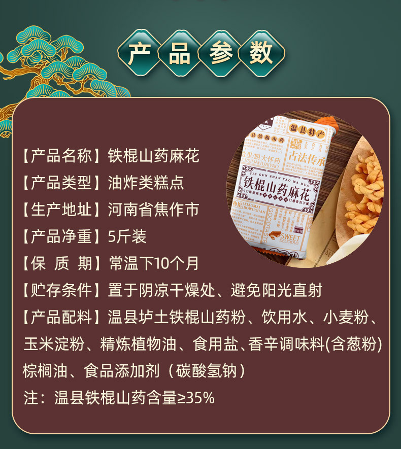 原料と原料 温県土鉄棒山薬粉、飲料水、小麦粉、トウモロコシ澱粉、一級大豆油、食用油、香辛料、パーム油