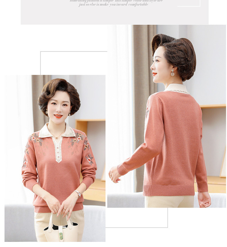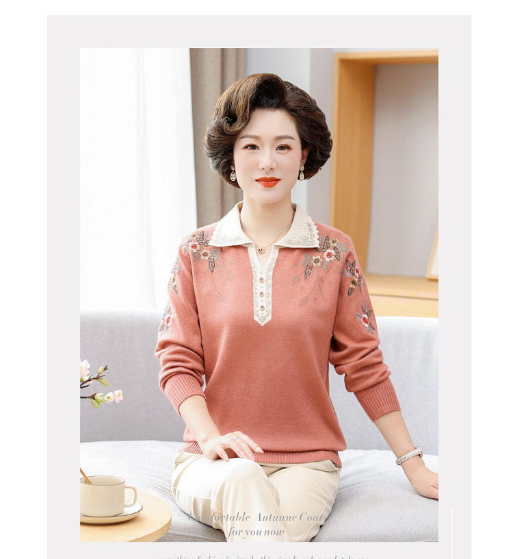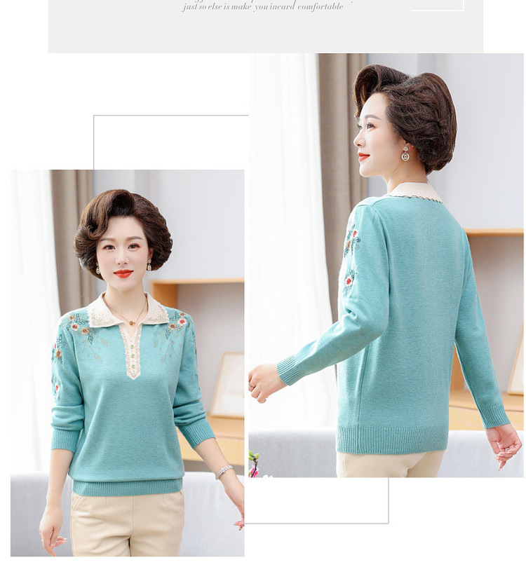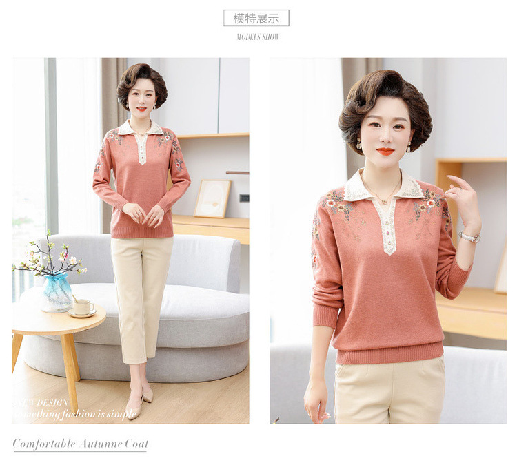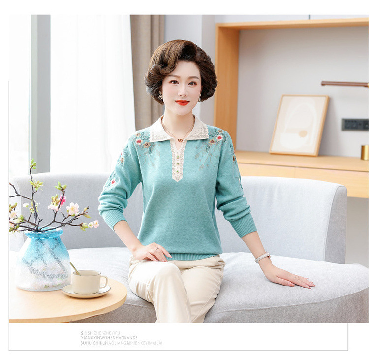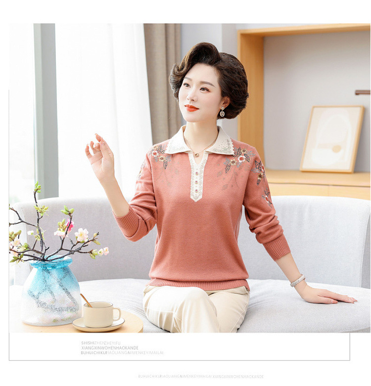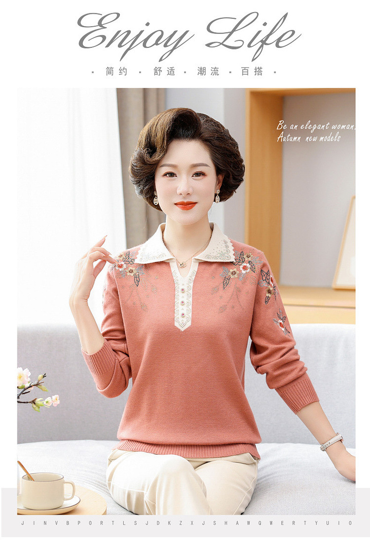 妈妈秋装洋气针织衫中年女士春秋长袖上衣服中老年毛衣外穿打底衫