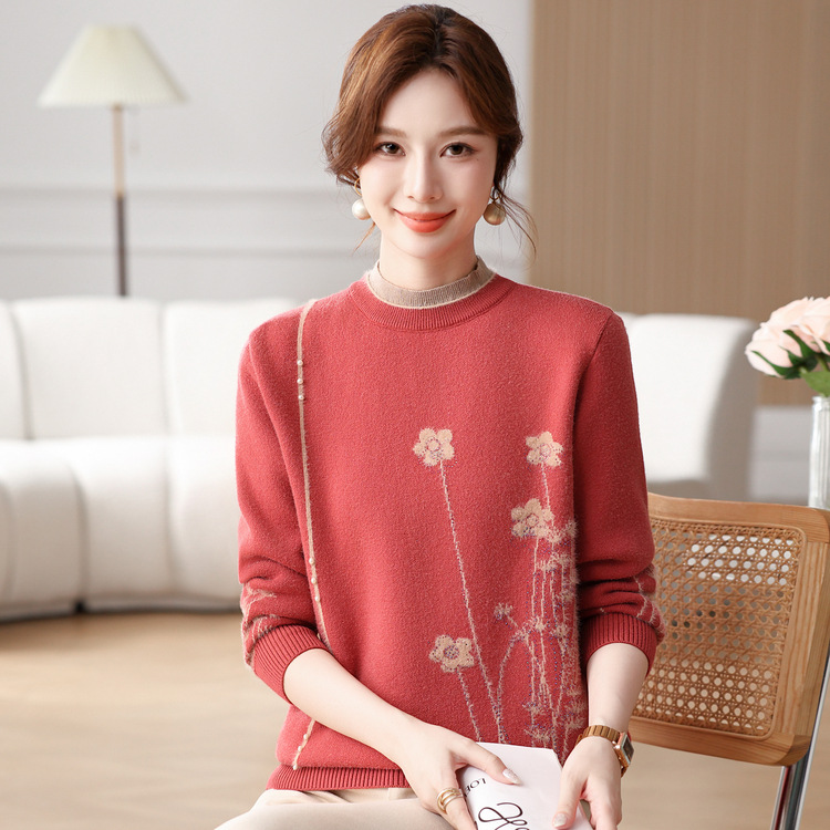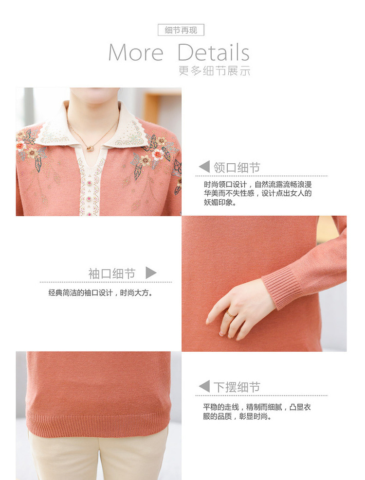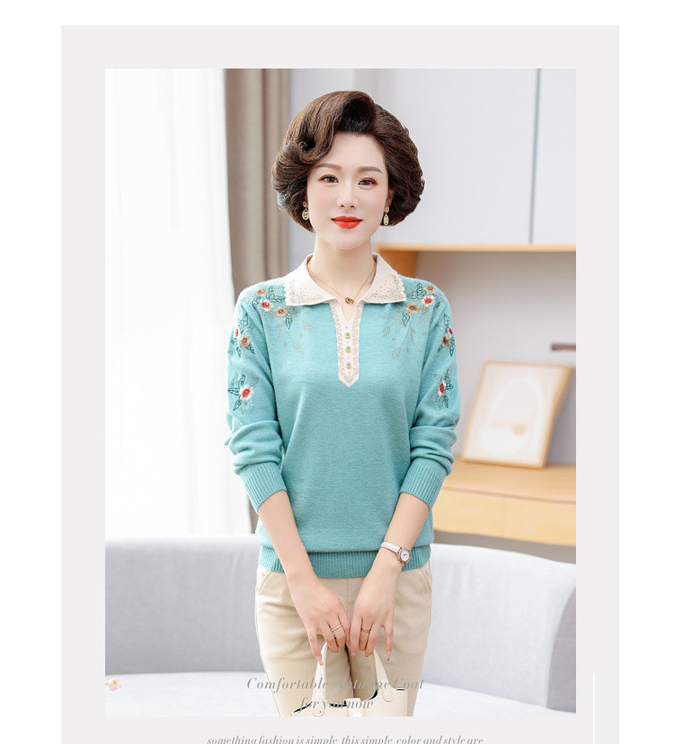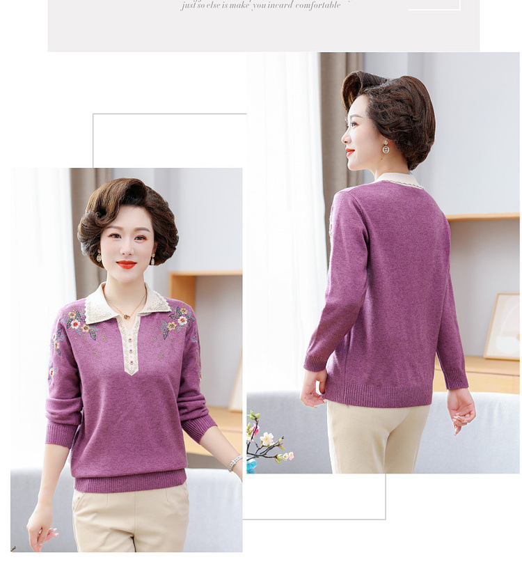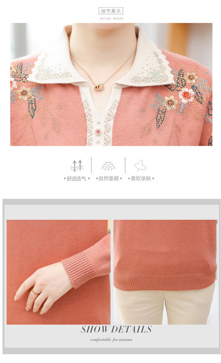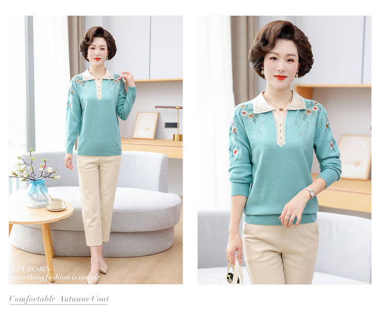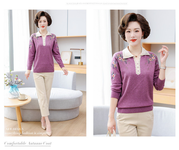 妈妈秋装洋气针织衫中年女士春秋长袖上衣服中老年毛衣外穿打底衫