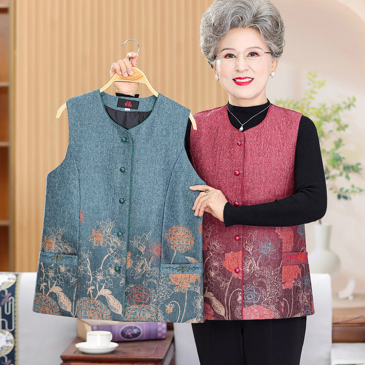 おばあさんのおばあさんは秋冬にベルベットの馬甲を着ています。