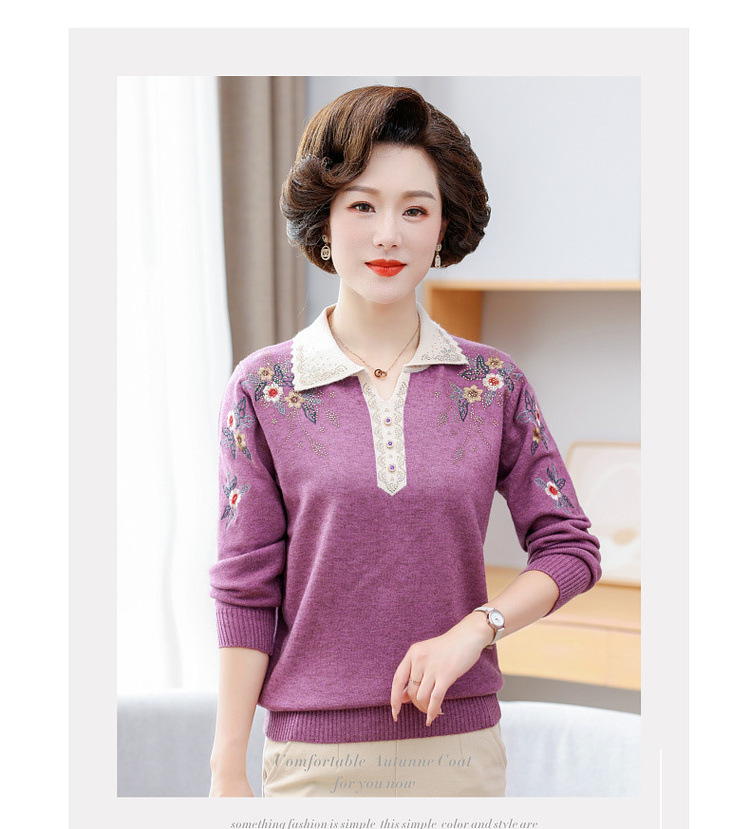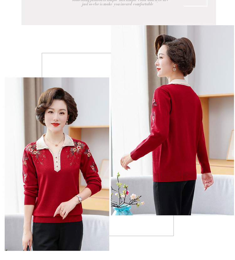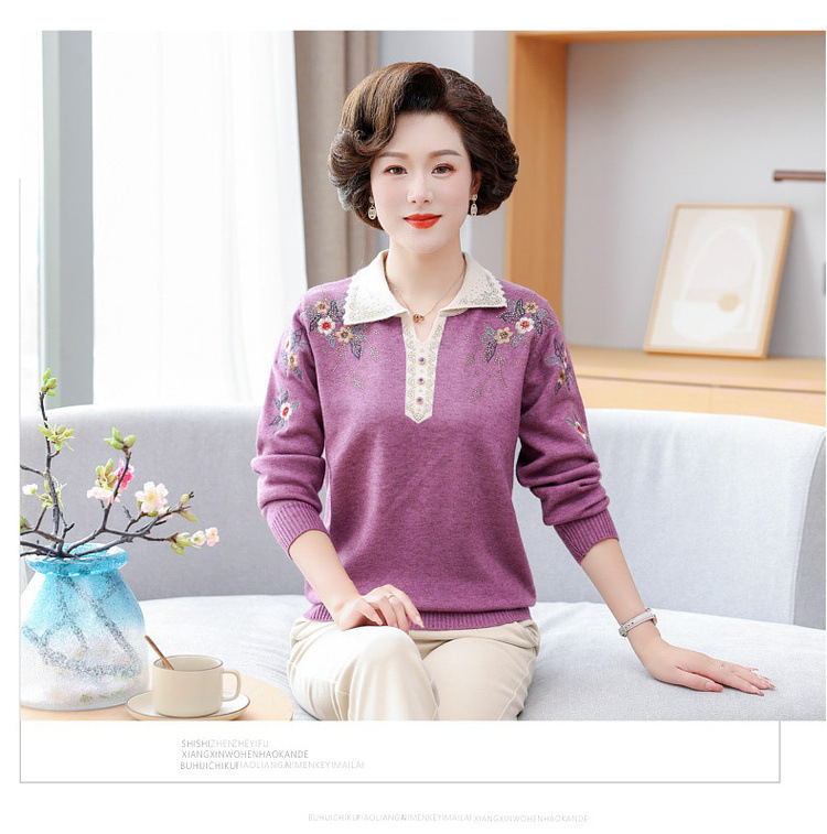 お母さんの洋風の襟のニットの中老の春の服の長袖の小さいシャツの底のシャツの中年の婦人服の新型の薄いセーター