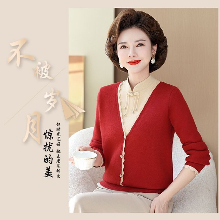 中高年秋冬セーター女性のお母さんのカーディガン60歳70おばあさんのニットのおばあさんの秋服のコート