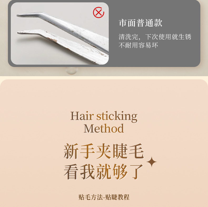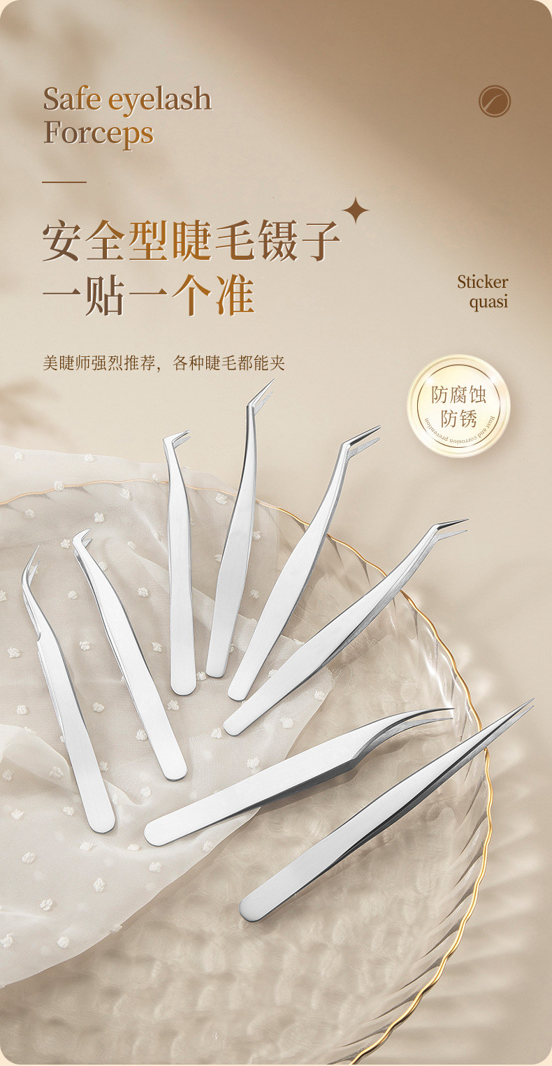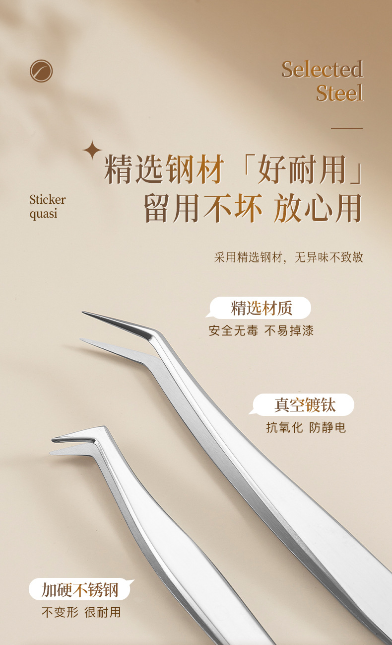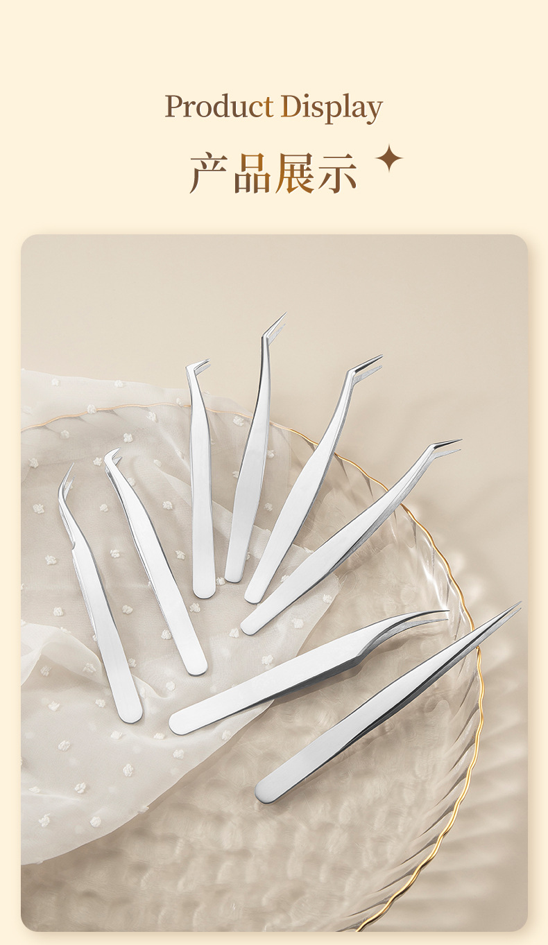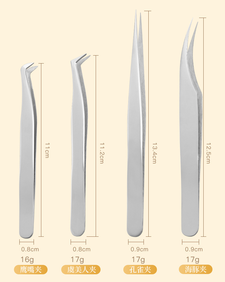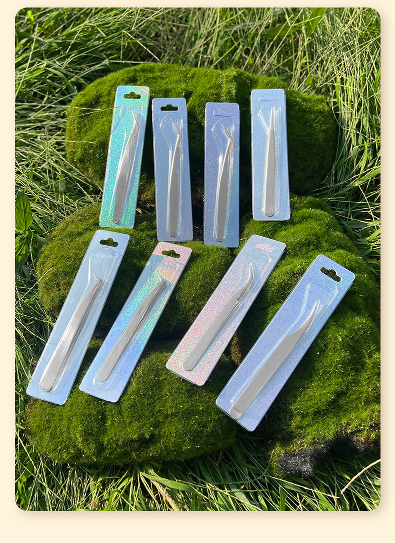 113mmピンセットまつげピンセットdiyつけまつげステンレス包装工紙カード包装エルボーツールカラーセット
