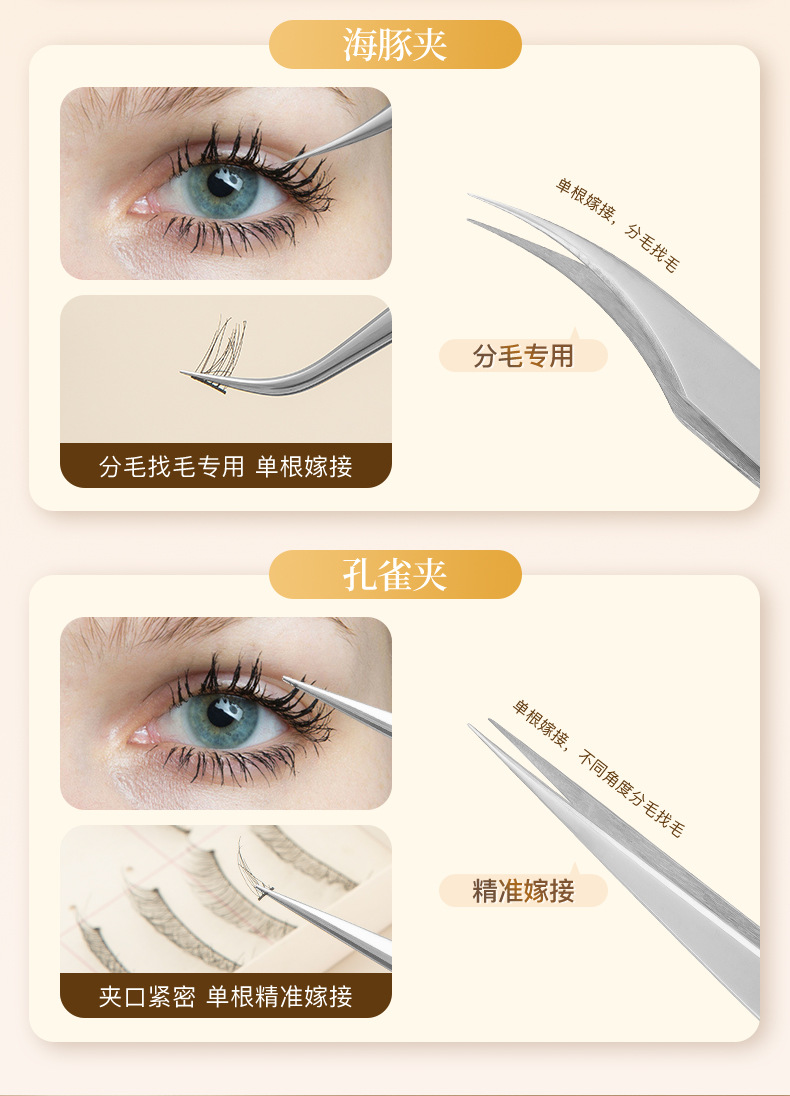 伪のまつげのピンセットの金の羽はイルカを挟みます。