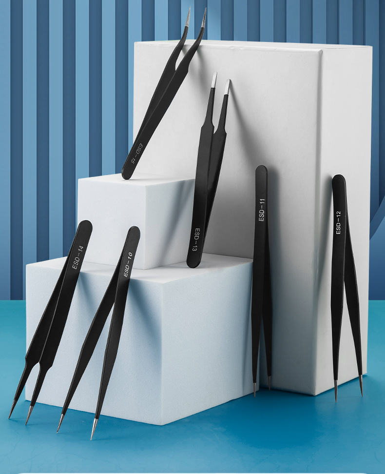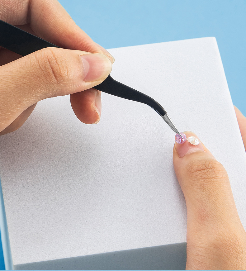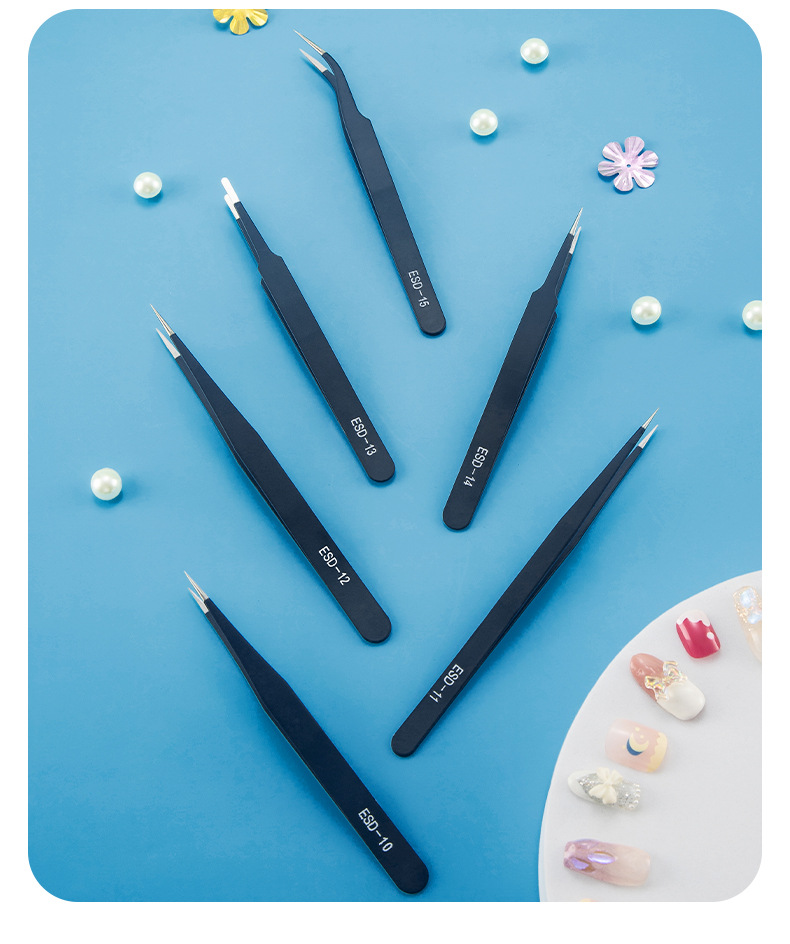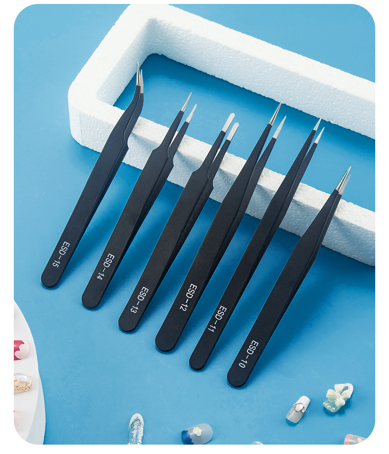 10センチステンレスミニピンセットエルボーダイヤモンド画ピンセットドリルピンセット銀色黒吸カード包装