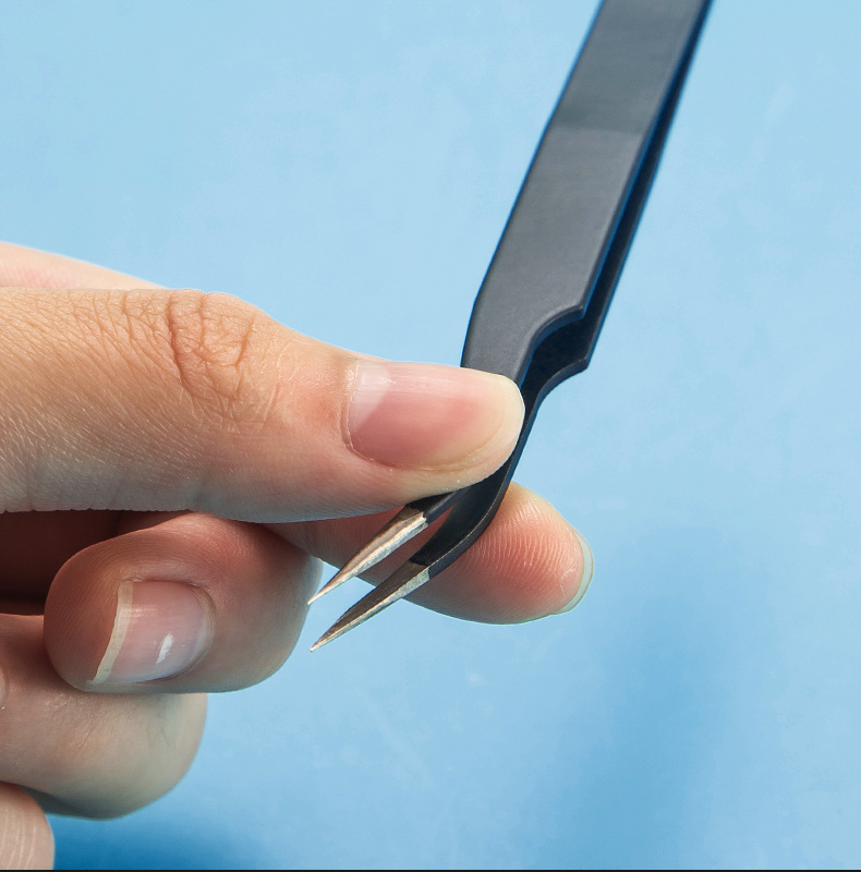 プラスチックのピンセットと硬いピンセットの黒い肘のまっすぐな頭の平頭の安い価格の製品のおもちゃのアクセサリーの部品