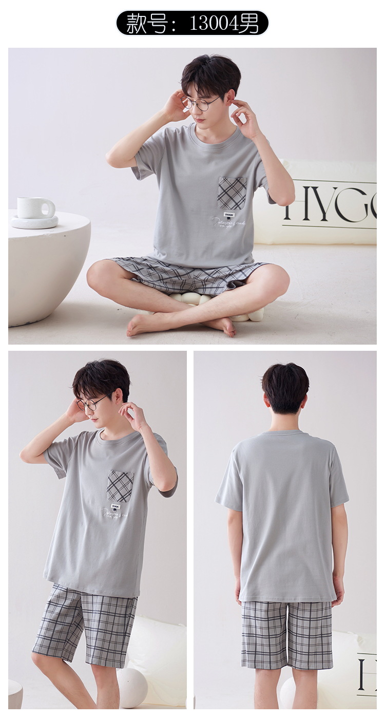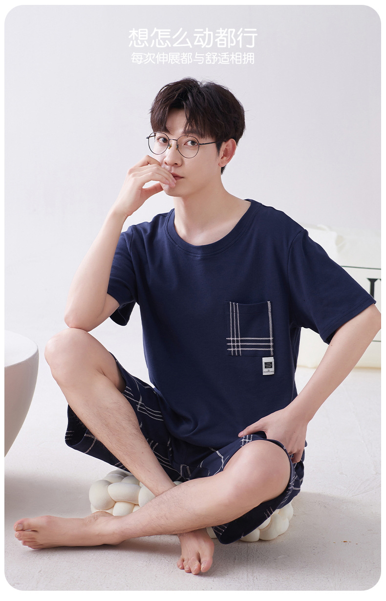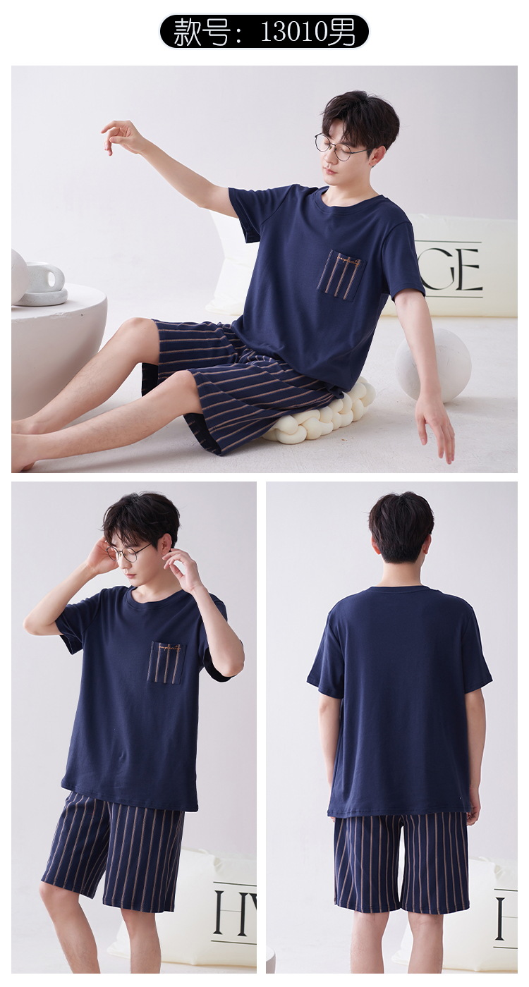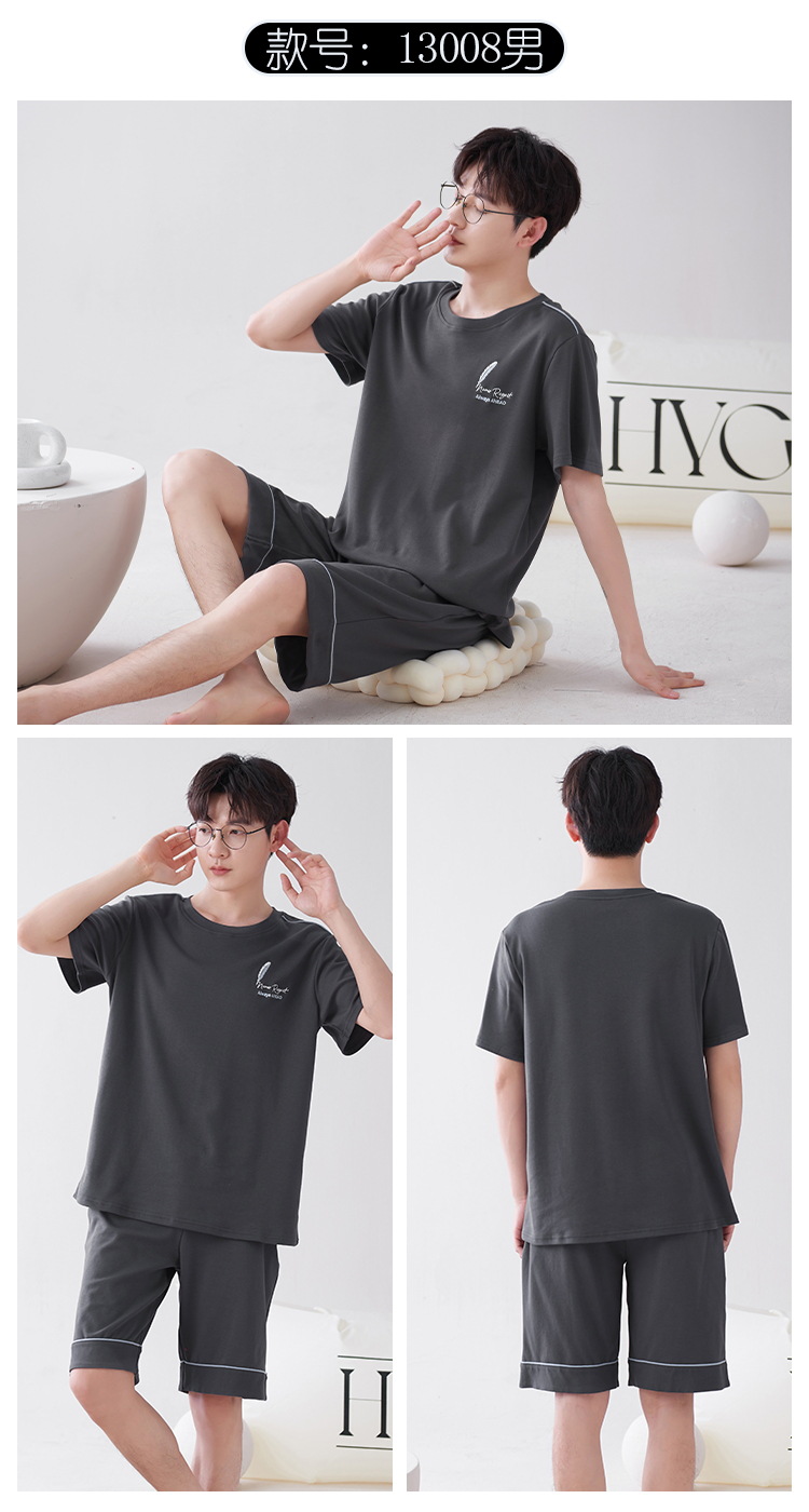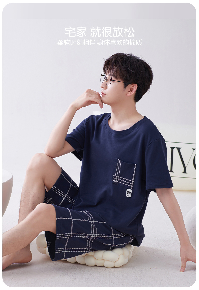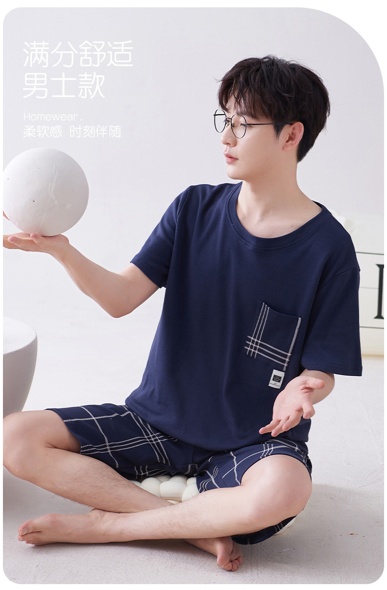 夏の純綿パジャマ男性丸首大サイズカジュアルは、新しい男性半袖半ズボンの家庭服セットを着ることができる