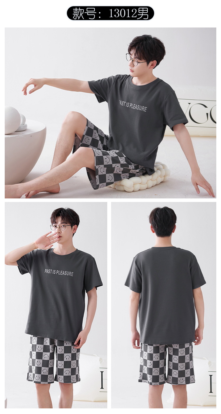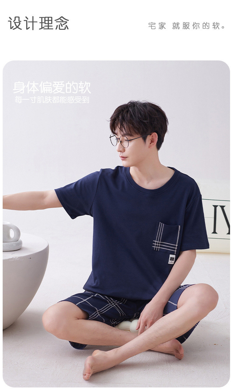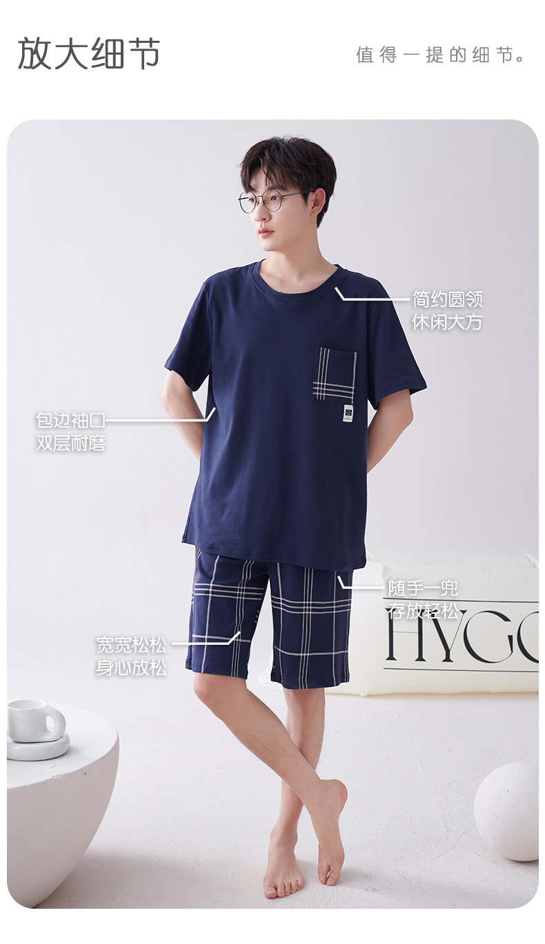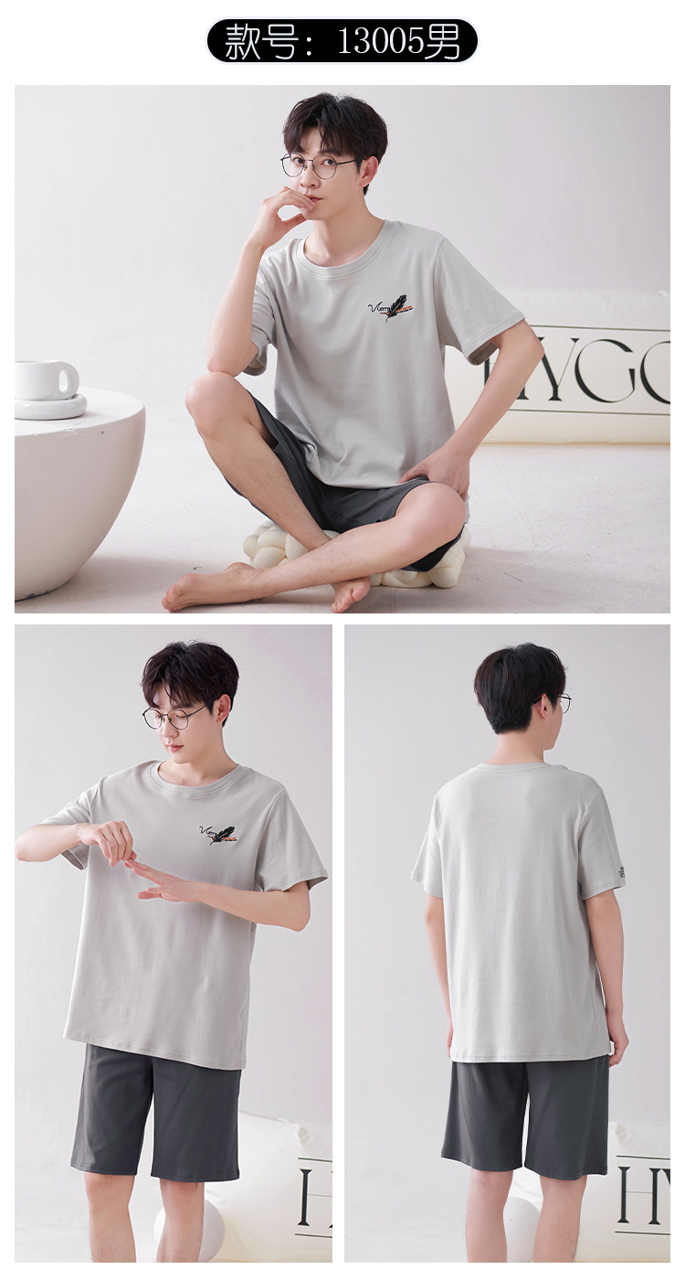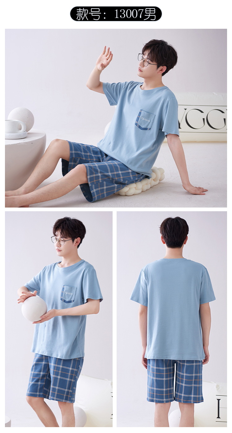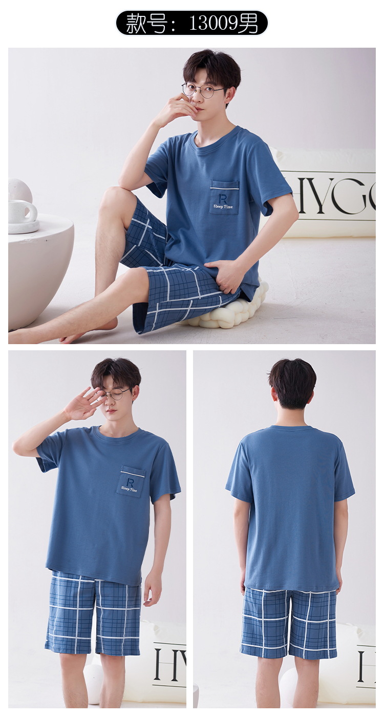 夏の純綿パジャマ男性丸首大サイズカジュアルは、新しい男性半袖半ズボンの家庭服セットを着ることができる