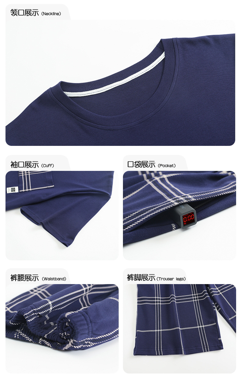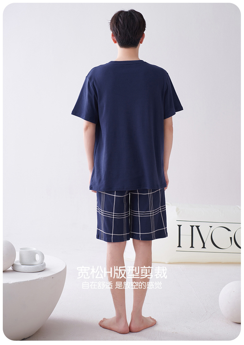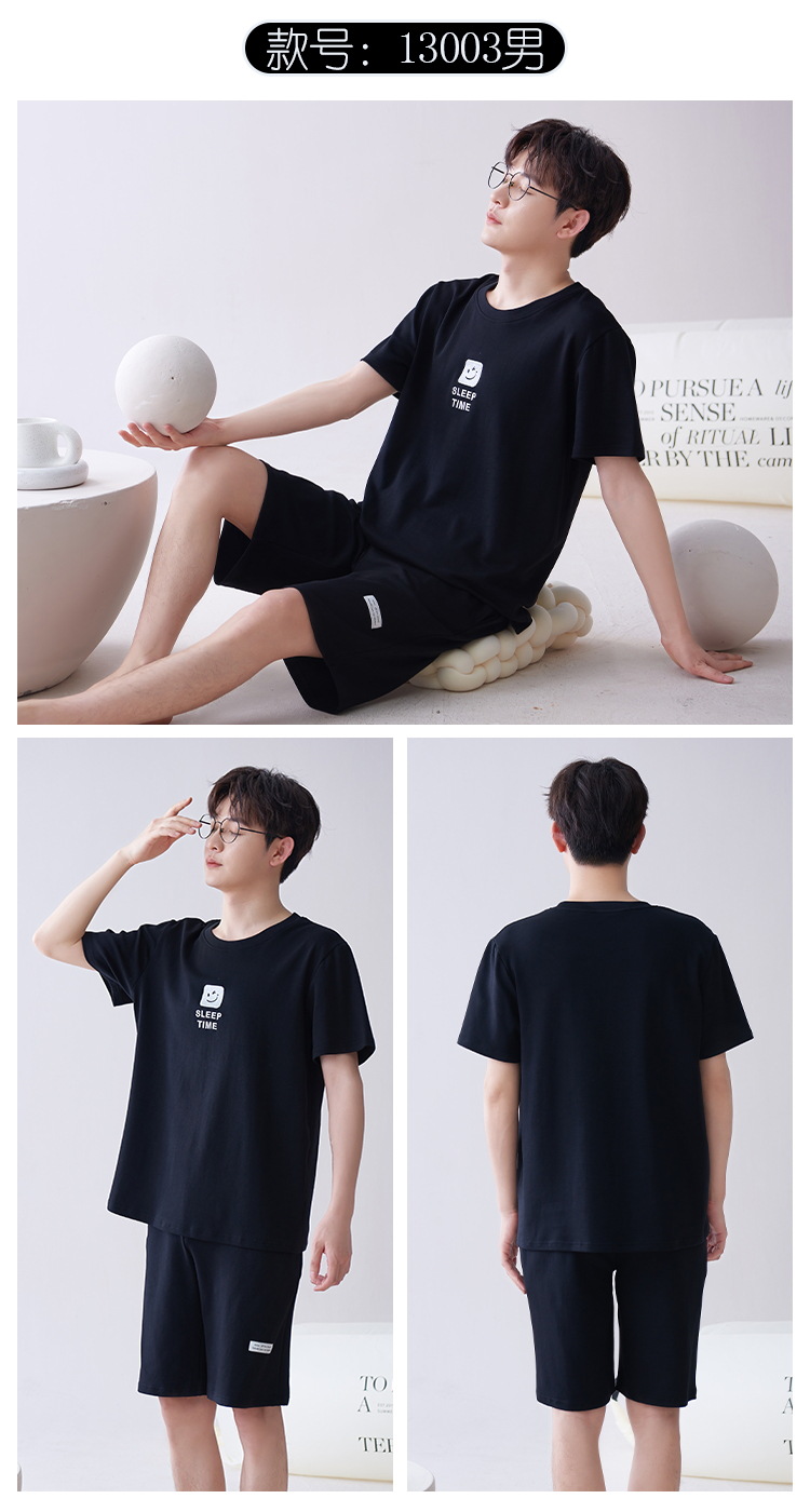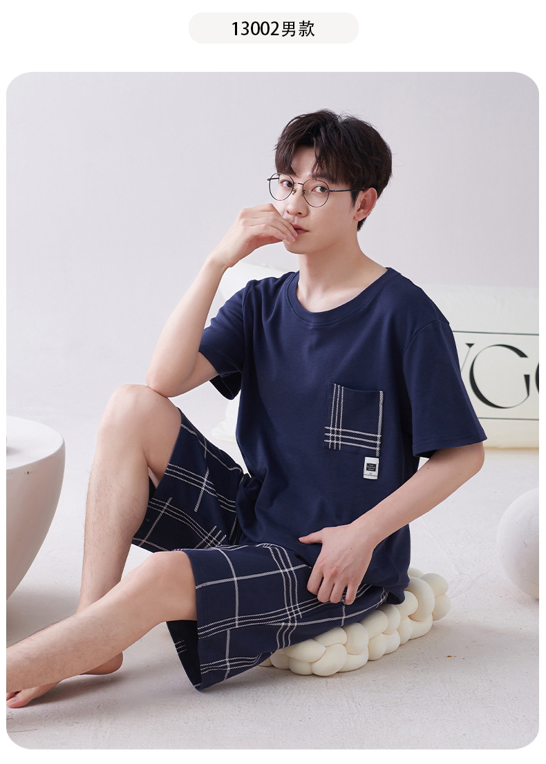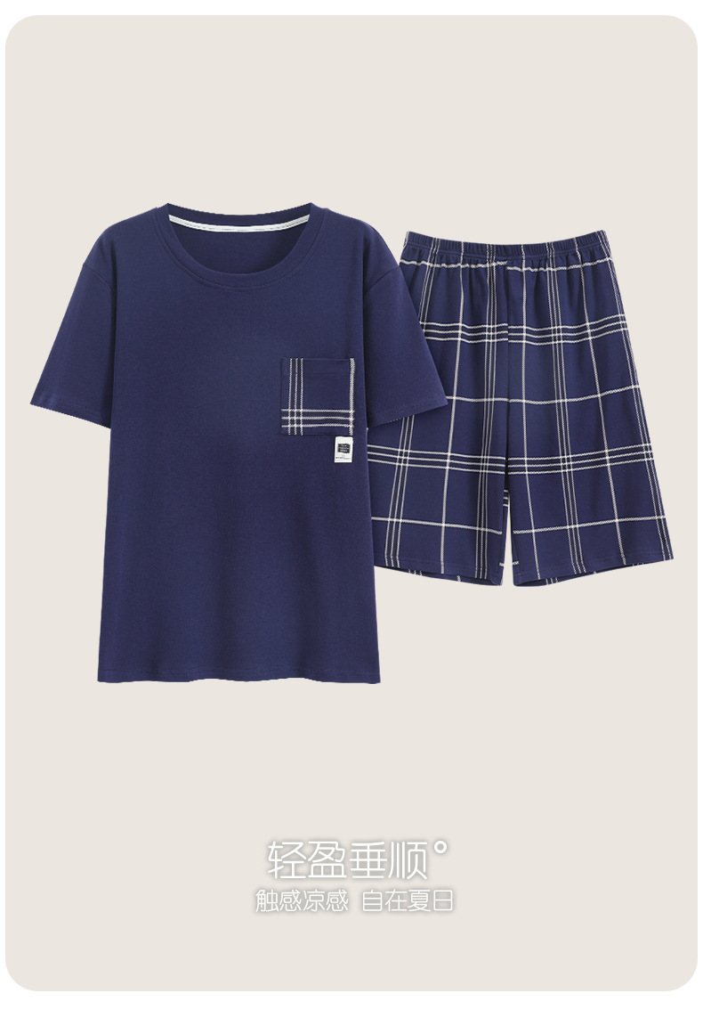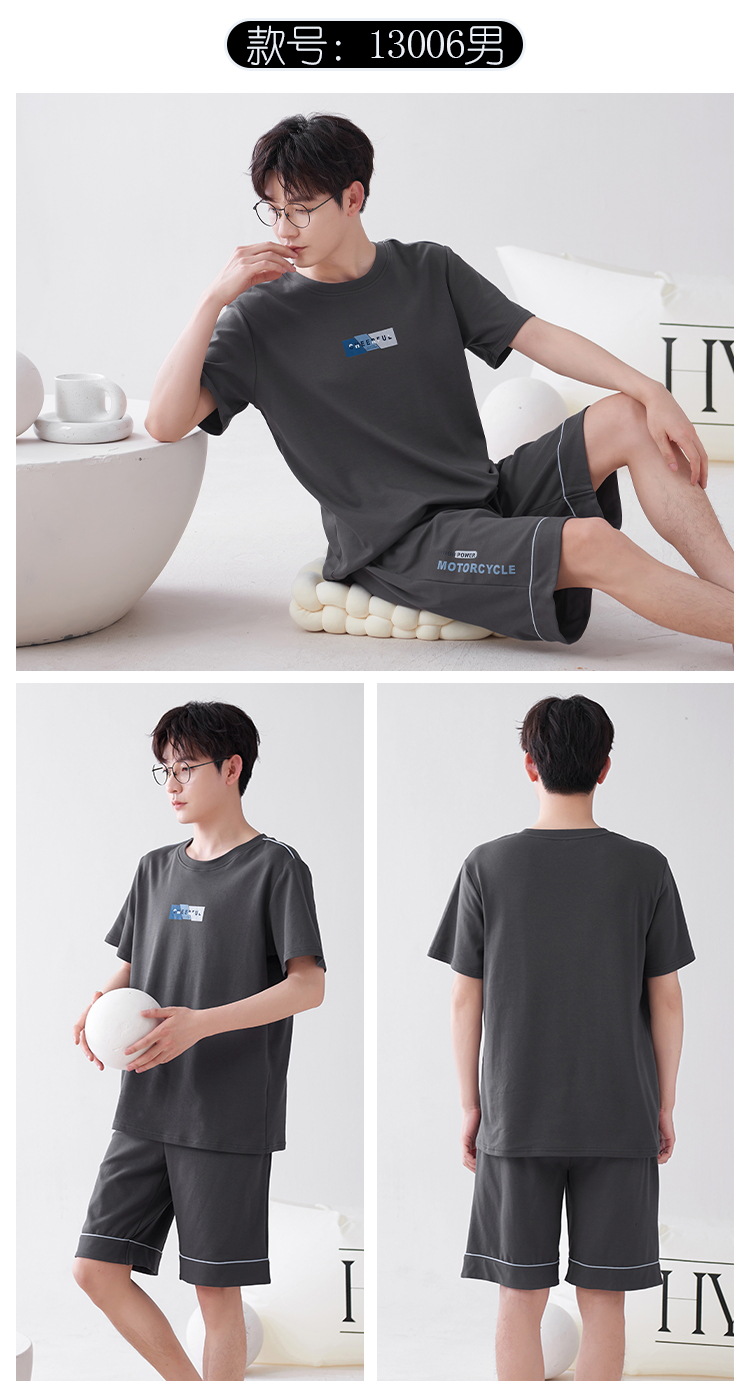 夏の純綿パジャマ男性丸首大サイズカジュアルは、新しい男性半袖半ズボンの家庭服セットを着ることができる