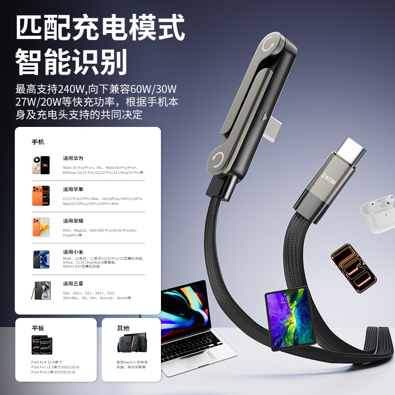 240W锌合金支架数据线 适用苹果三星双typec快充充电线跨境爆款