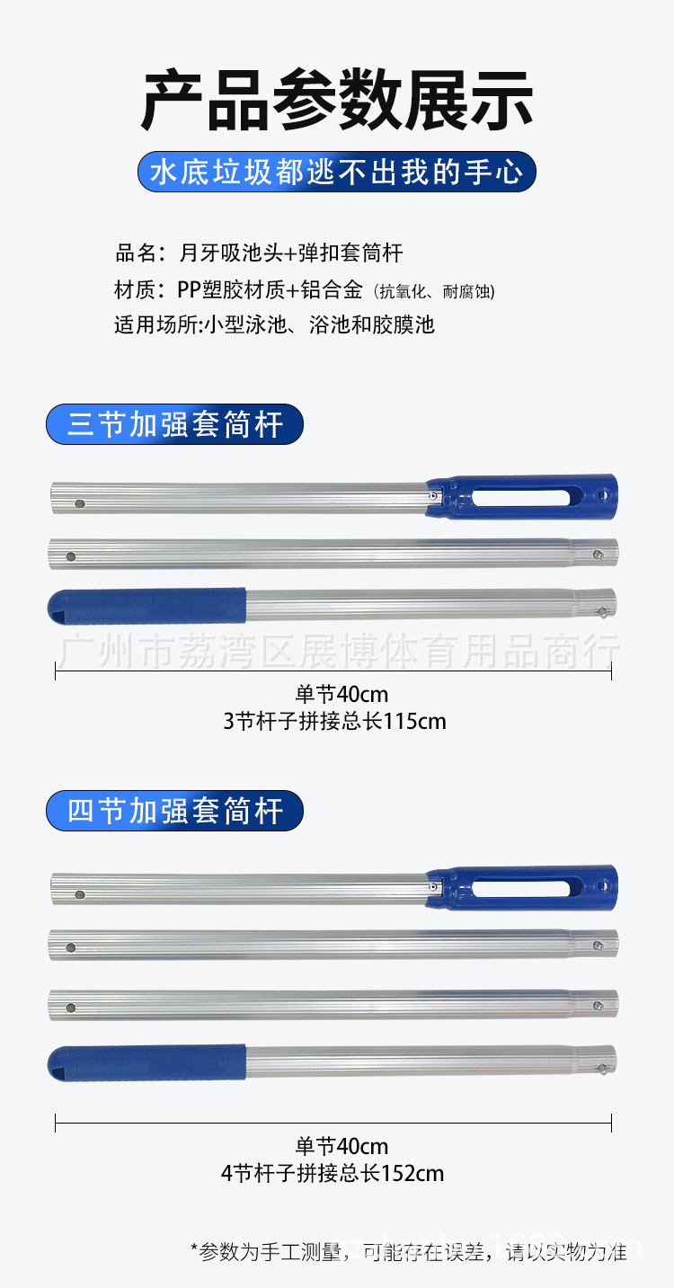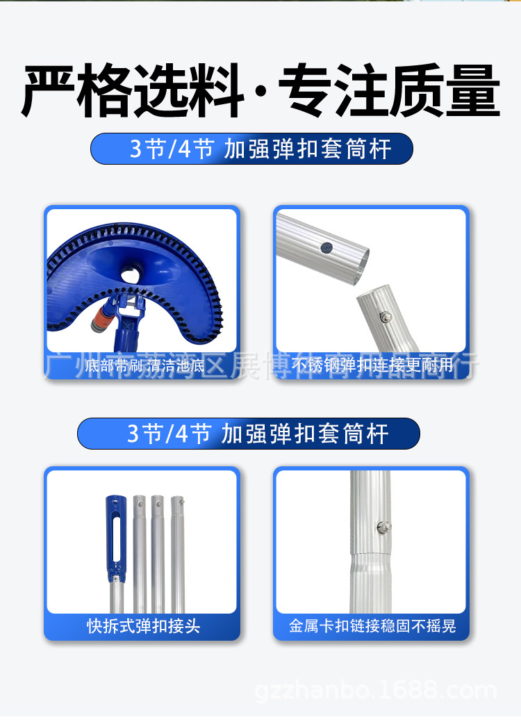 泳池清洁设备 水池清洁器真空吸池头半月型吸池头搭配加长铝合金