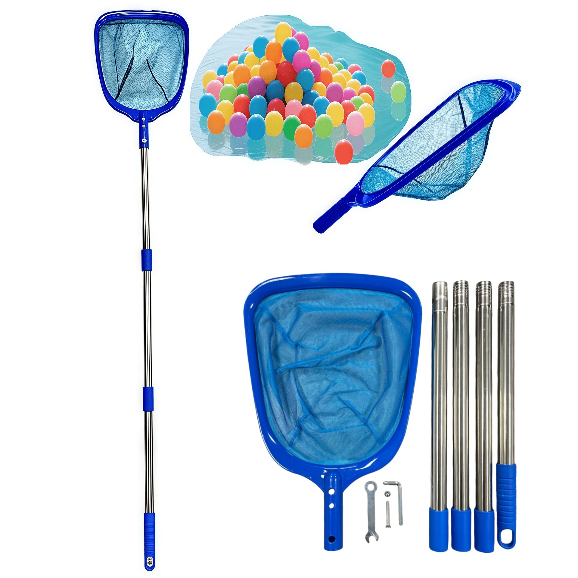 メーカー直販プールの清潔標準タイプのポール付き浅水葉網5本アルミ棒浅網は5本のポール網を取り外すことができる