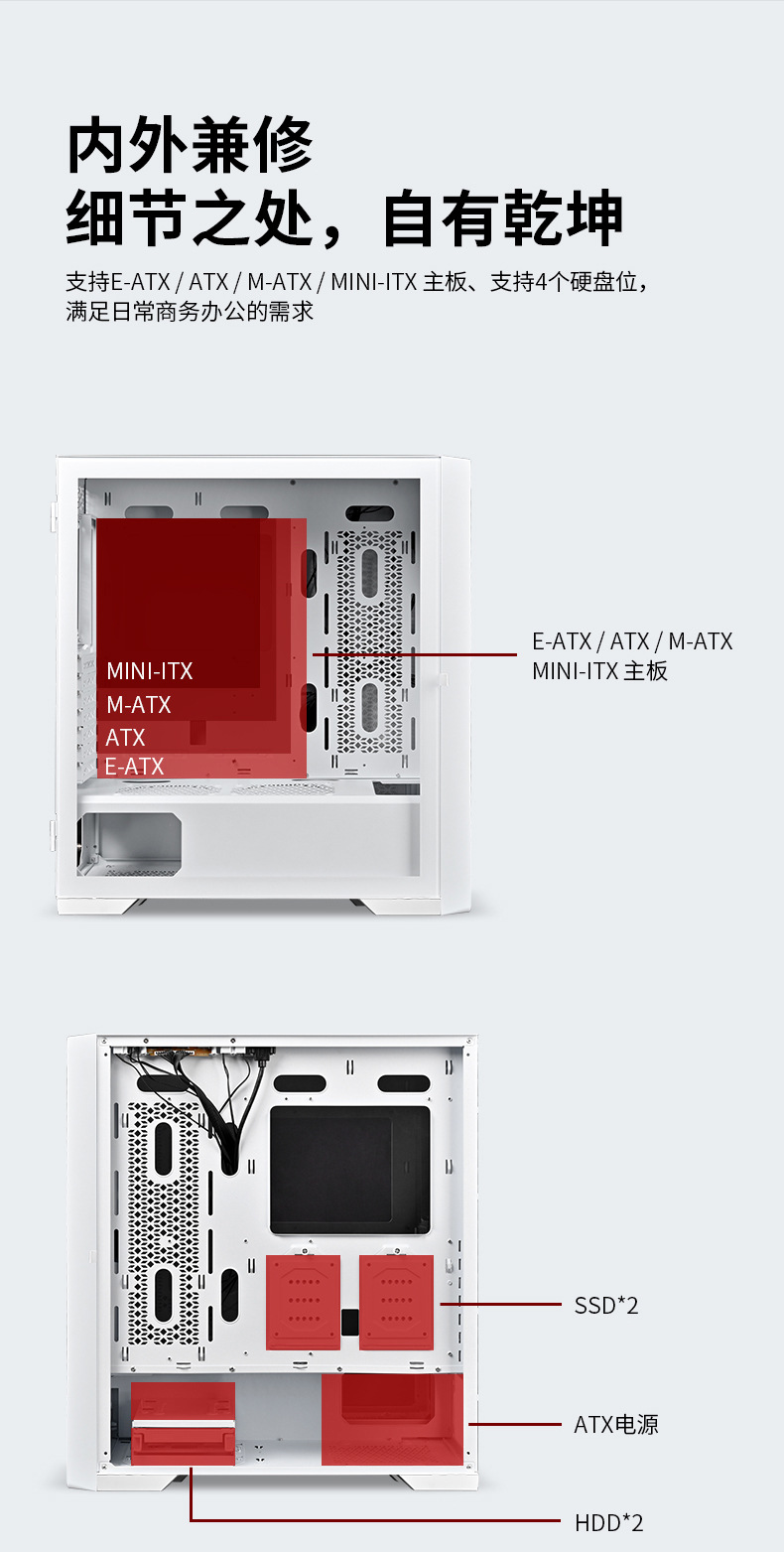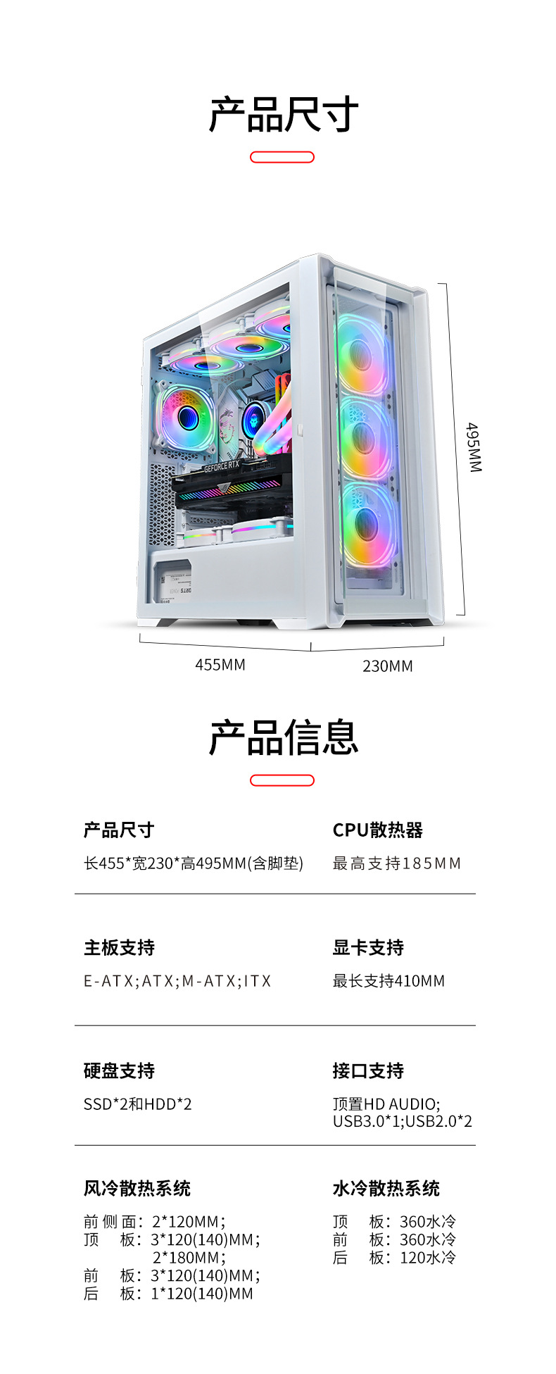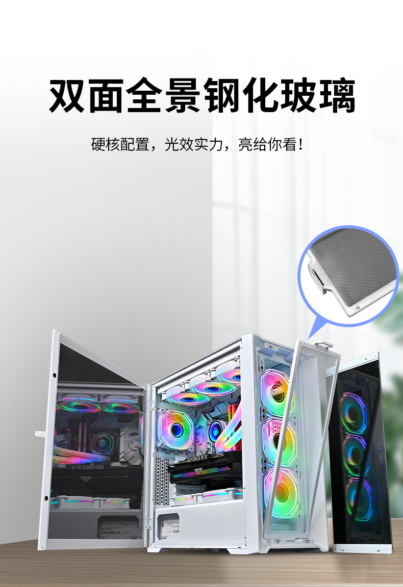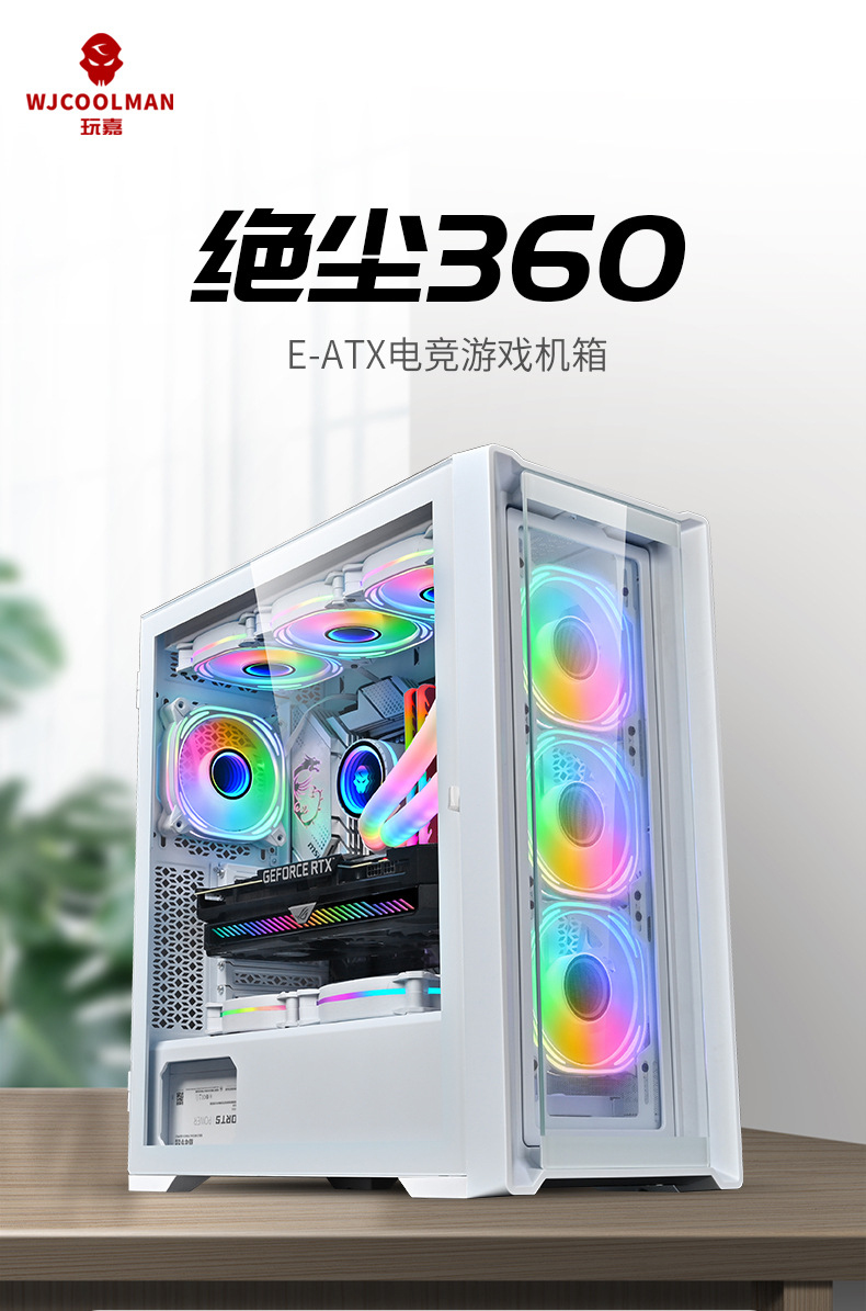 绝尘360双面全景钢化玻璃服务器机箱7 PCI插槽E-ATX电竞游戏机箱