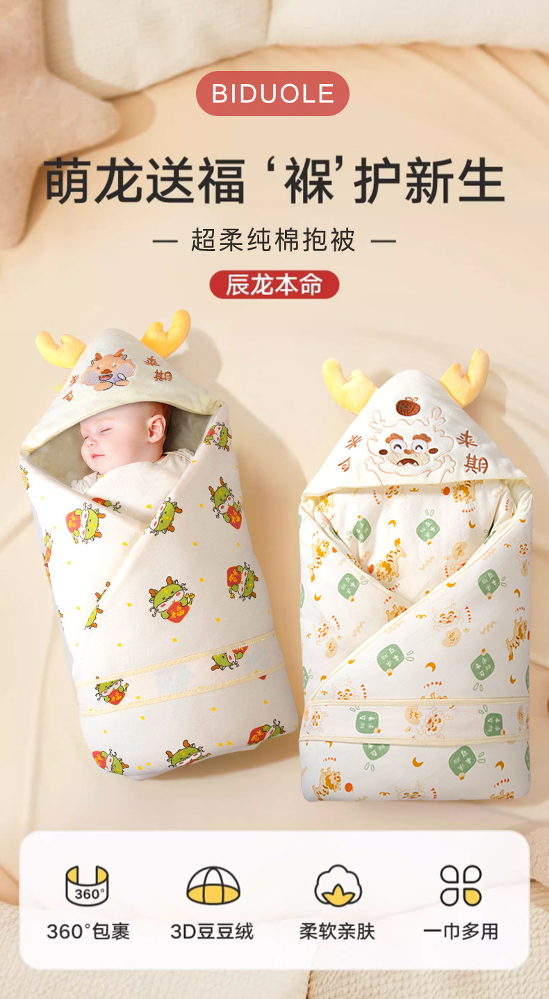 2024龍年新生児抱被四季通用純綿新入生初生包は秋冬に厚くなって産室に出た