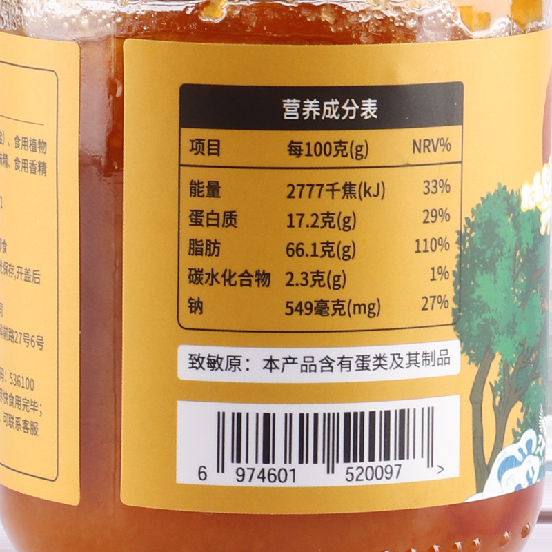 原材料と成分 シーアヒルの塩漬け卵黄、食用油、食用塩など