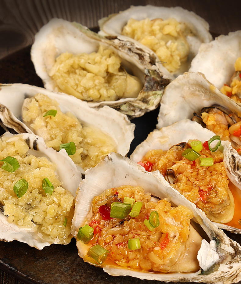 珍星新鮮流砂海鴨塩漬け卵黄にんにく蓉醤にんにく香椒塩粉桂花蜜醤焼き生カキ焼き唐辛子にんにく