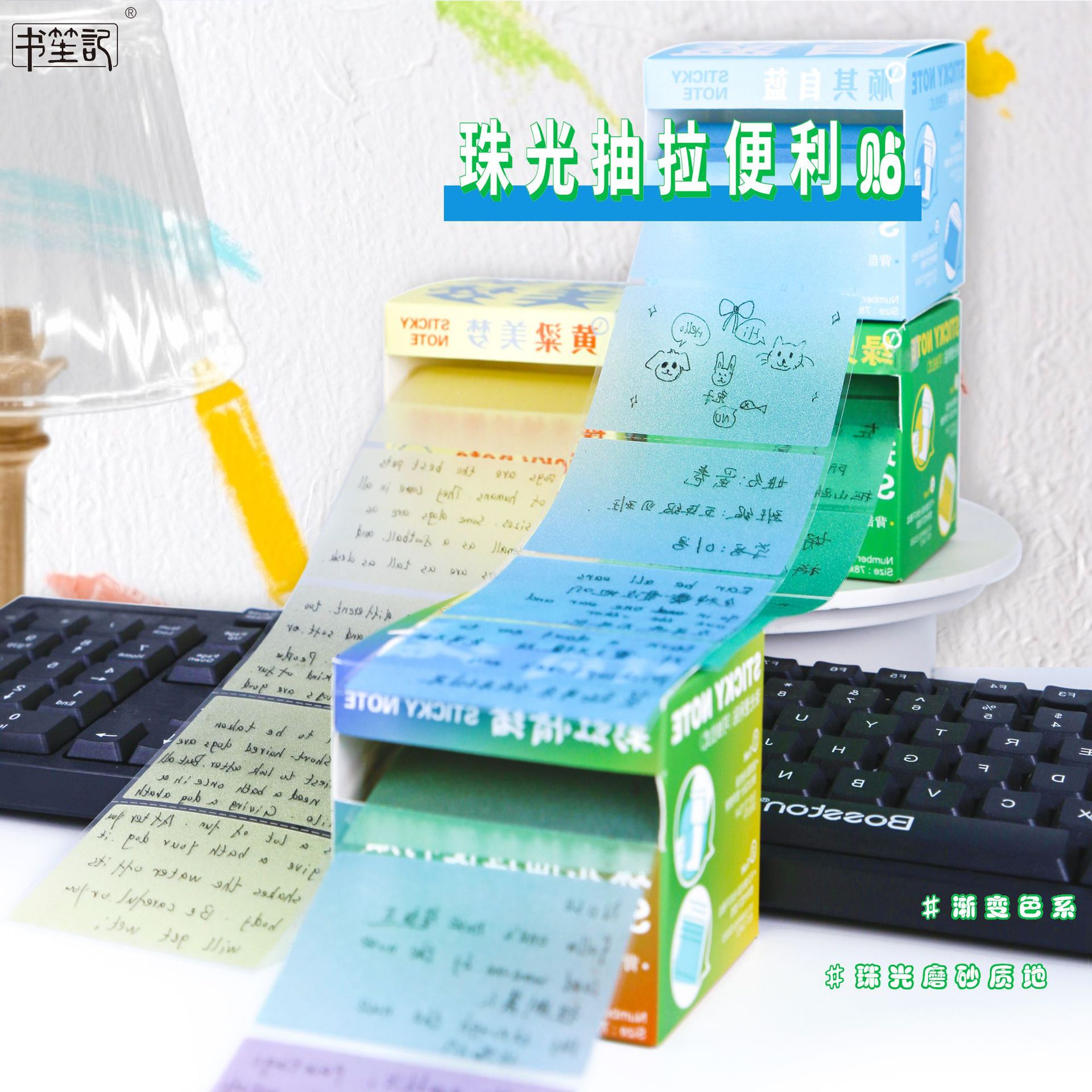 引き出し式真珠光沢付箋 カラードーパミングラデーション 学生用透明付箋 高見えかわいい 中学生