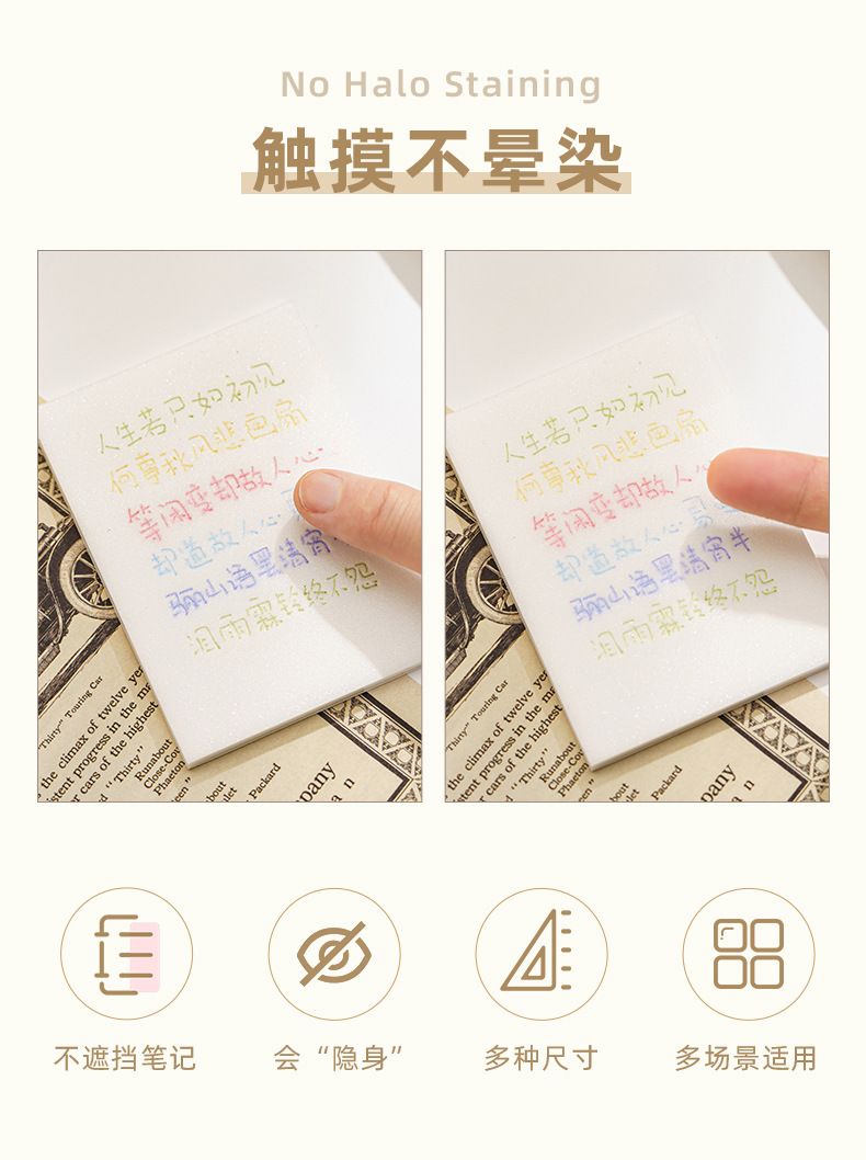 透明な付箋は高颜値学生ノートの付箋シールを貼ることができます。