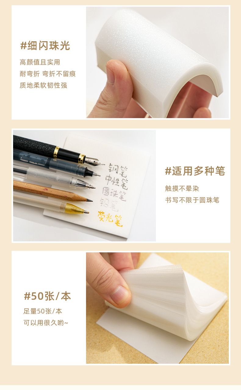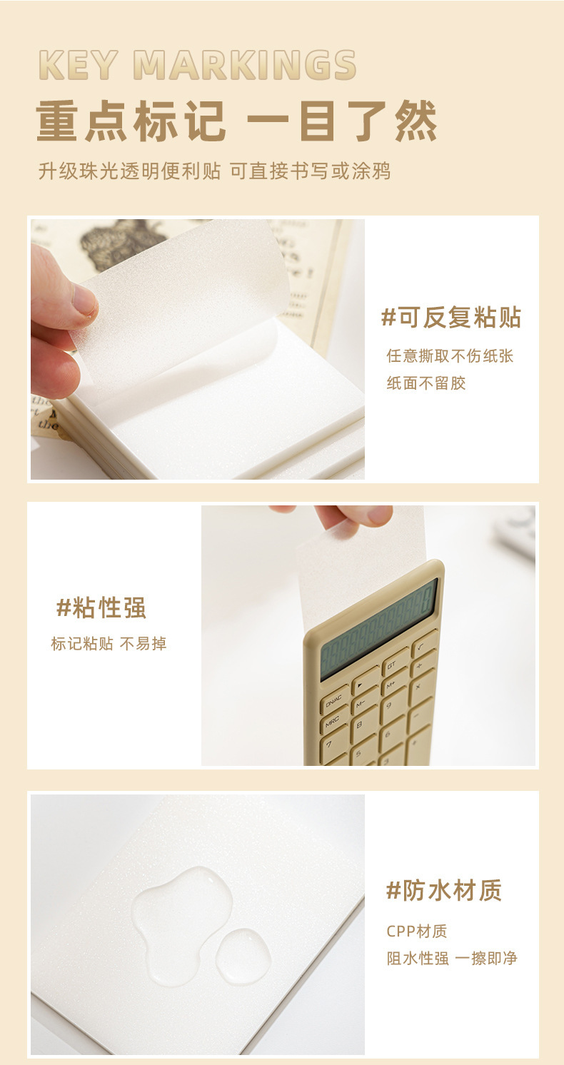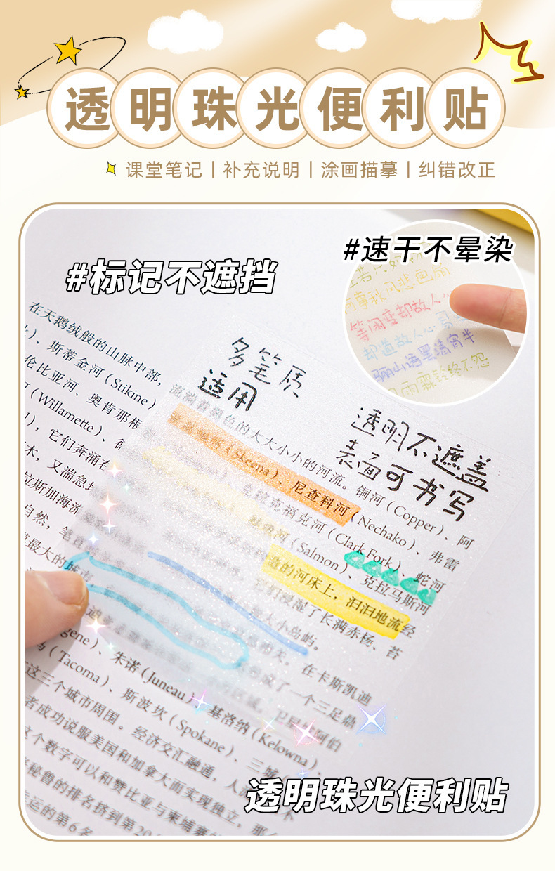 新商品の透明な珠光の付箋防水学生の簡単な付箋紙の高い顔の値の事務学習の付箋の卸売り