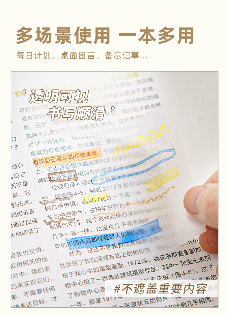 ペット用透明付箋、速乾性、高見え、貼り付け可能、中学生オフィスノート、ノートシール、防水
