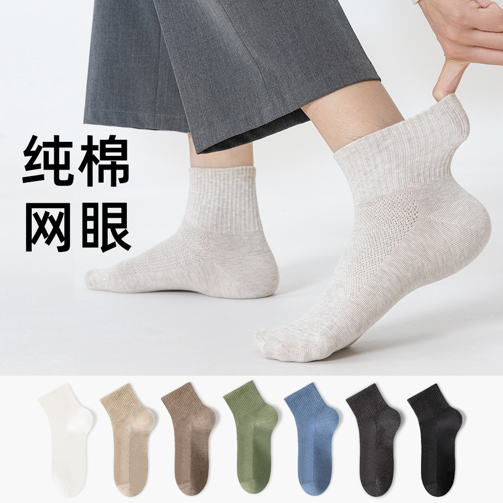 2024春夏抗起球無骨男靴下中筒純綿低筒ソックス男性抗菌吸汗薄手夏潮