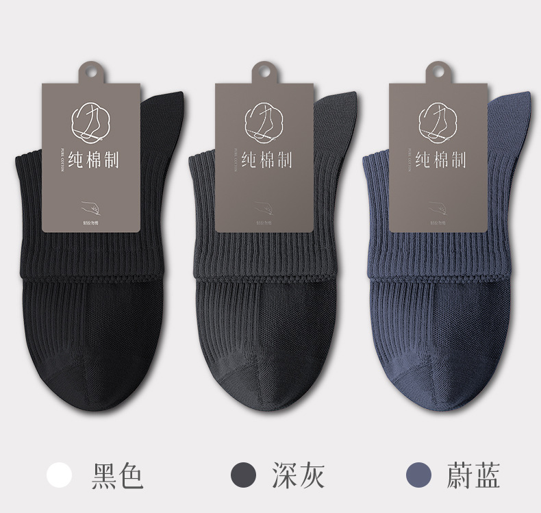 メンズソックス ミドル丈 春秋 純綿 抗菌 吸汗 無地 黒 白 綿靴下 縫い目なし