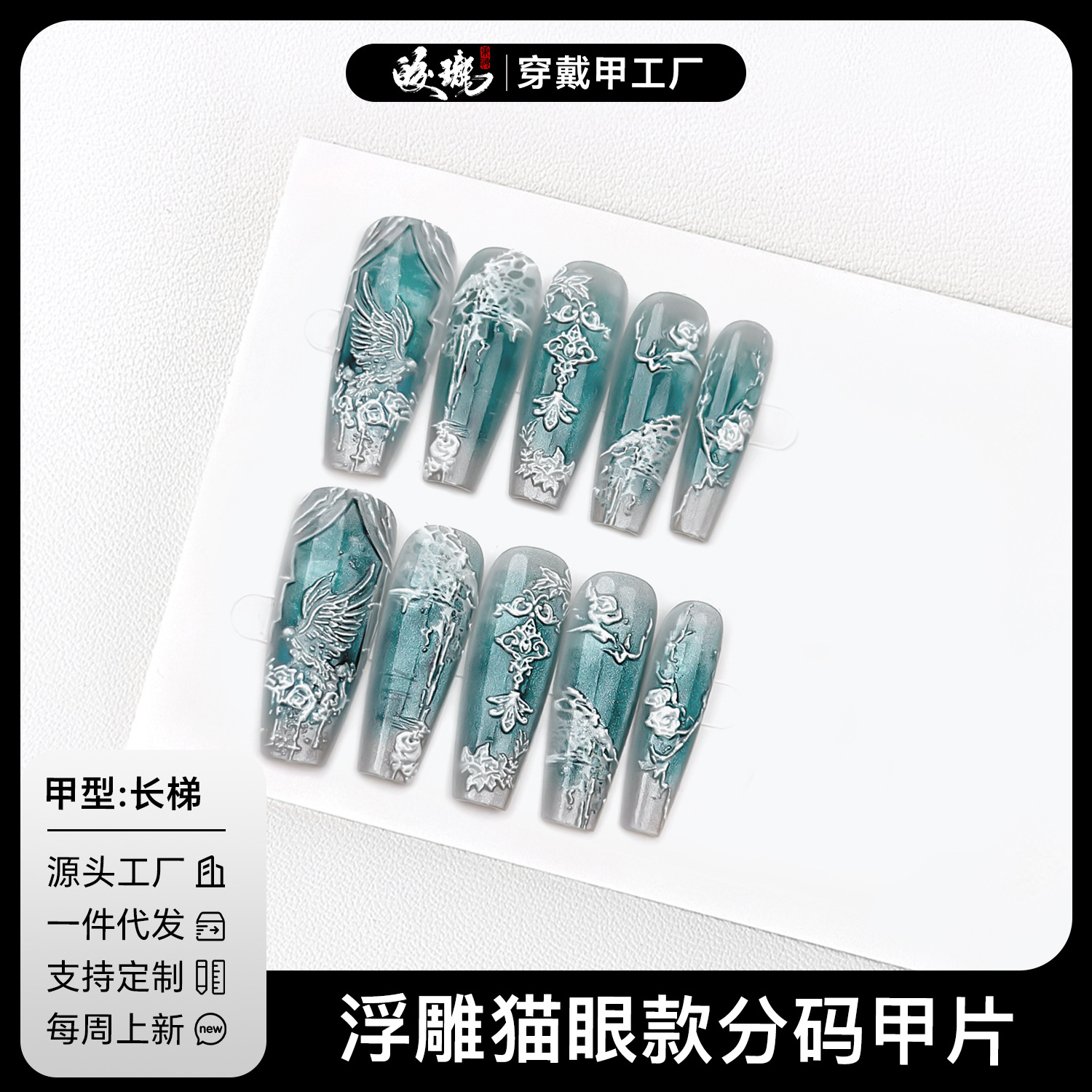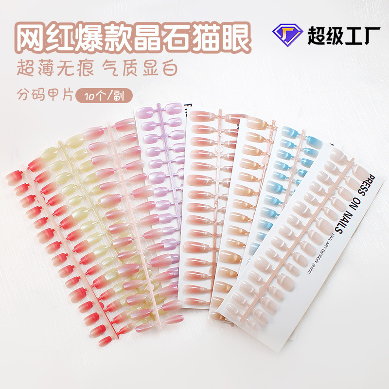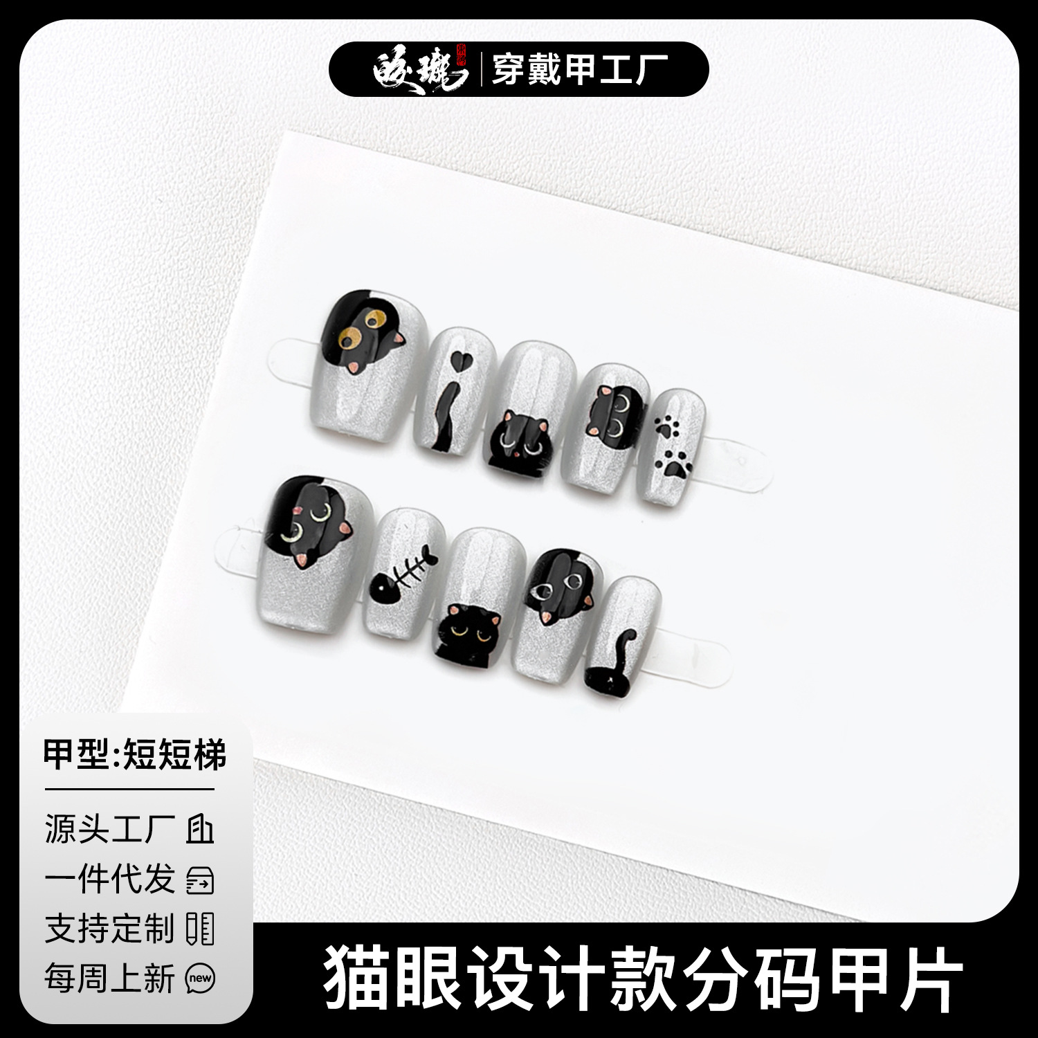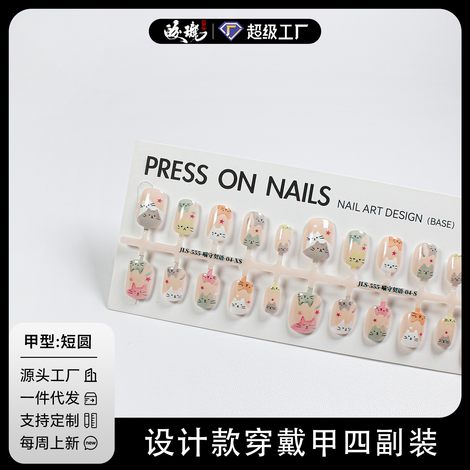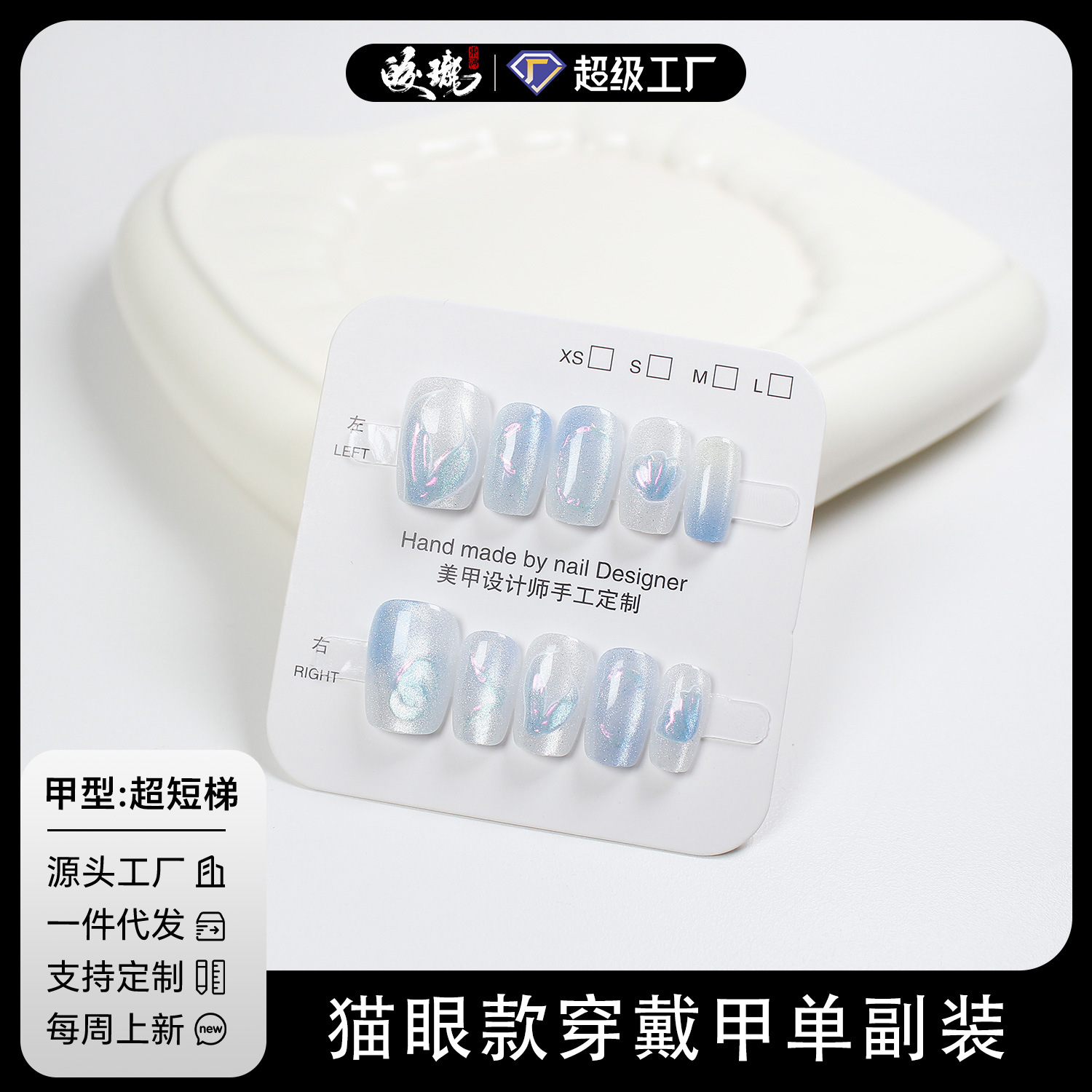 [Jiaolong] 高級漫画かわいい猫目スタイルのウェアラブルネイル夏の新製品美白と優しいネイル完成品