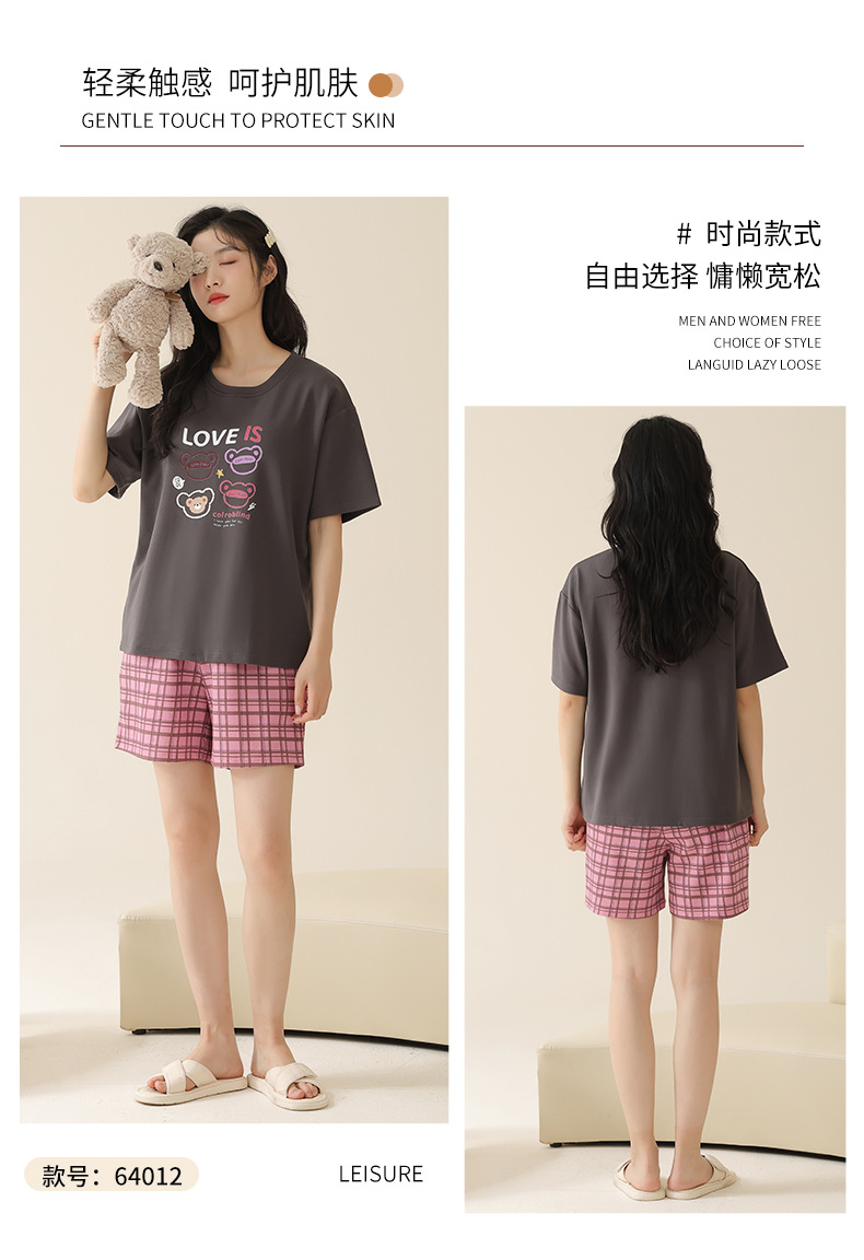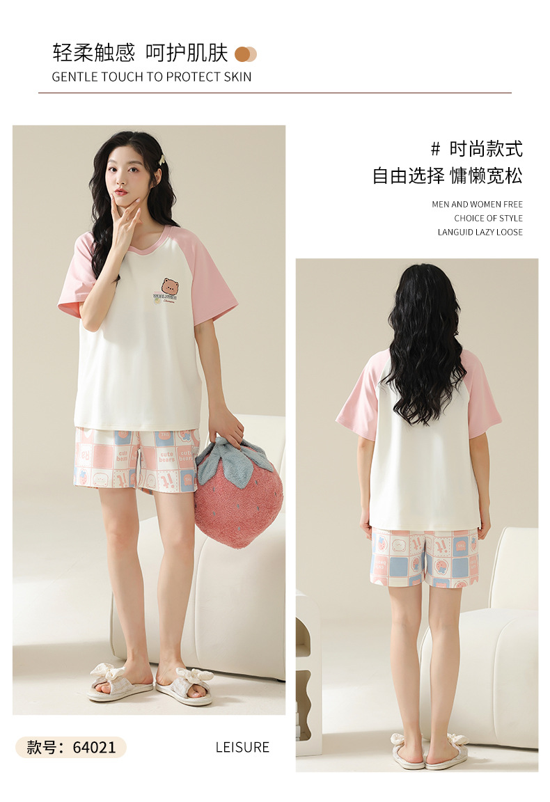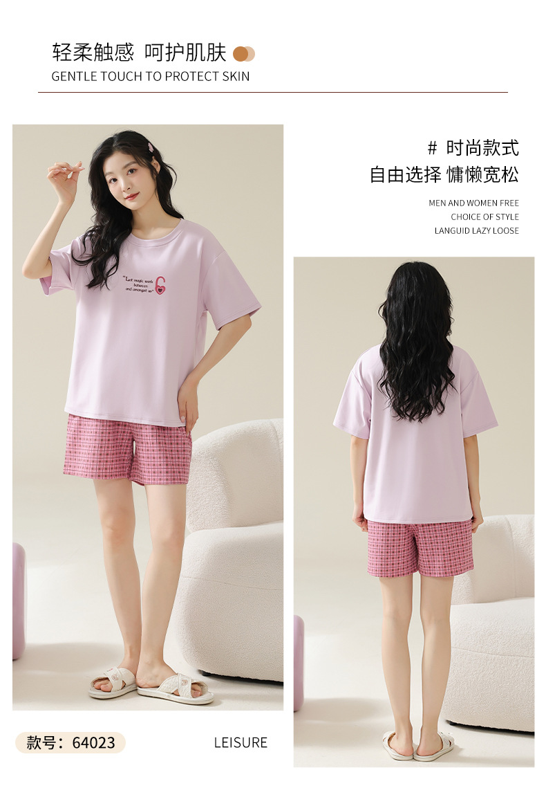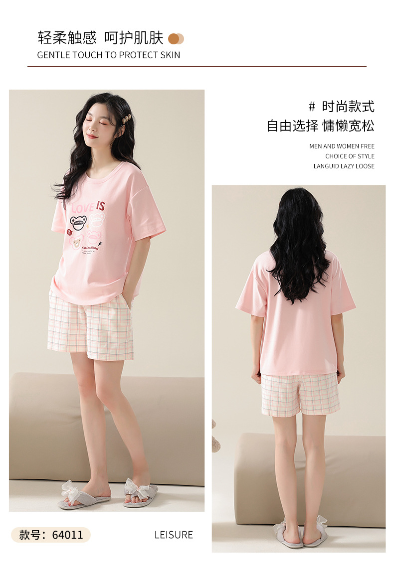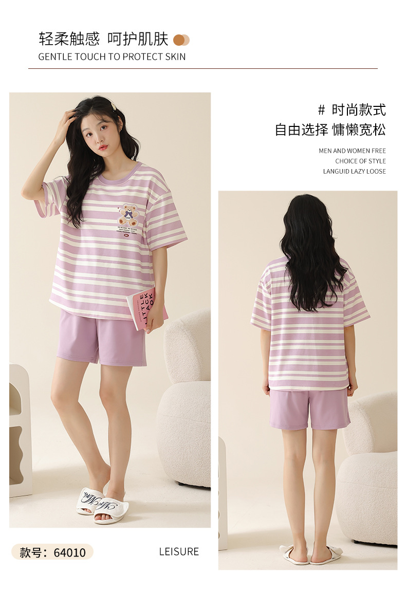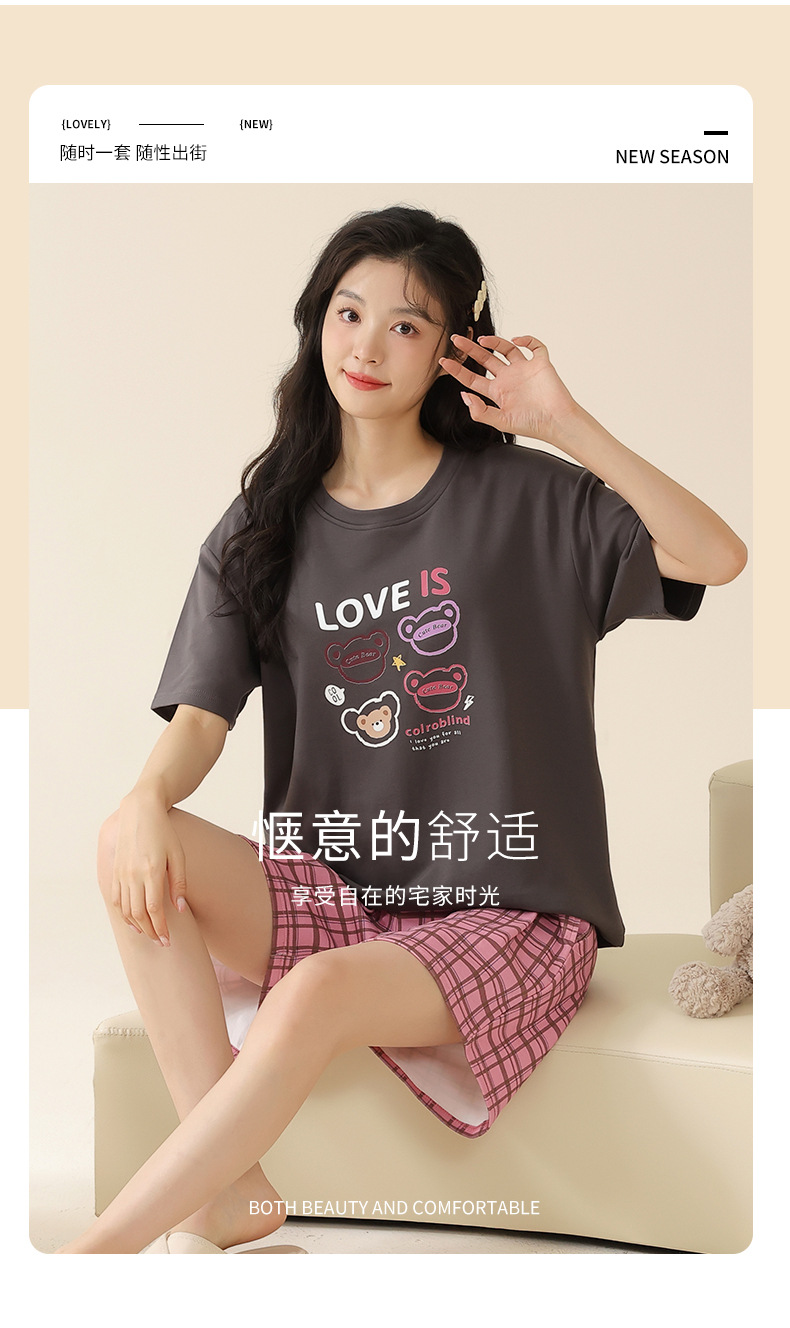 夏の純綿パジャマ女性の新しい丸首カジュアルサイズは、綿パジャマ半袖ホームウェアセットを着ることができます