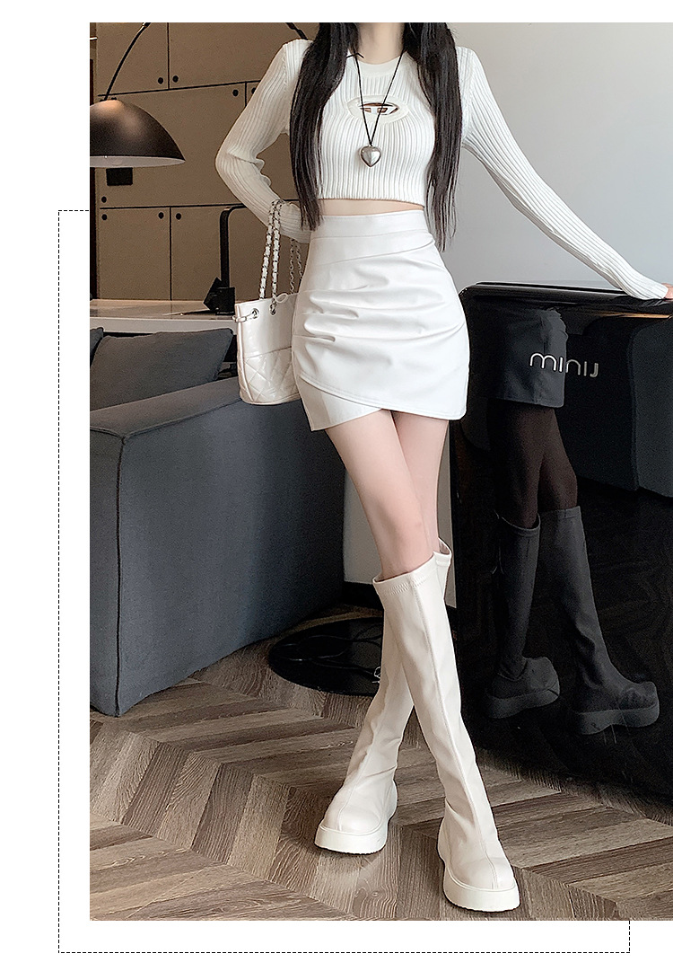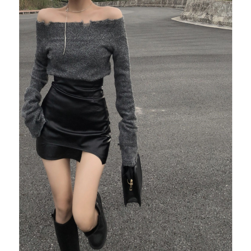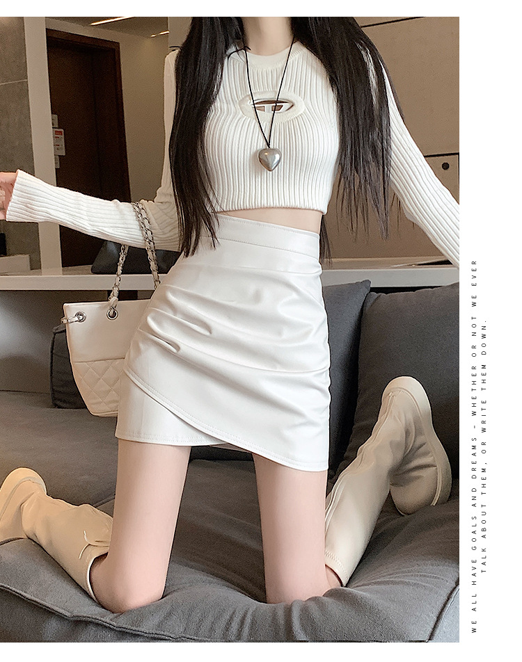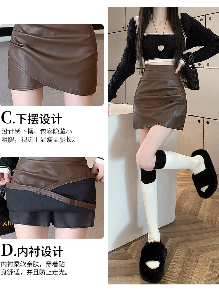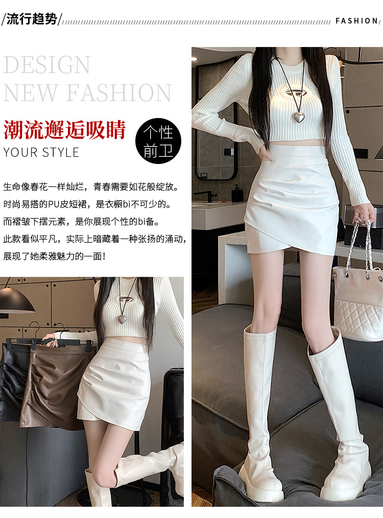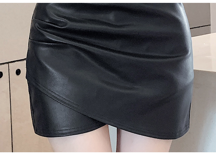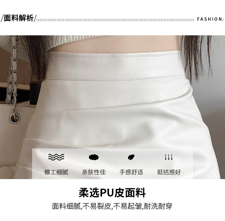 デザイン感小衆開叉不規則半身スカート女2023秋冬新作ハイウエスト痩せpu皮ショートスカート
