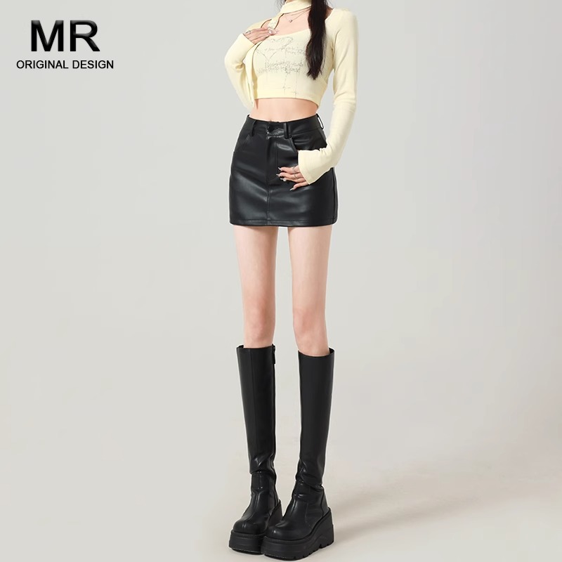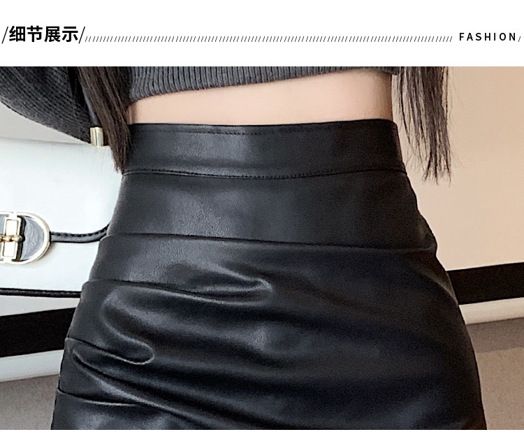 黒いpuの半身のスカートのギャルのミニスカート2023秋冬の新型のハイウエストの質感のa字のヒップのスカートのスカートの女性