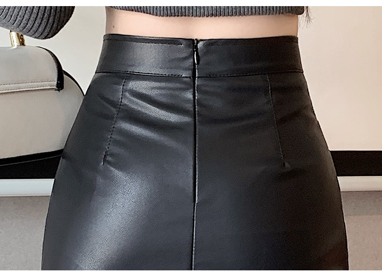 黒いpuの皮のスカートの女性の2022秋冬の新型の半身のスカートのファッションの高い腰のa字のスカートの職業のスカートはヒップのズボンのスカートを包みます