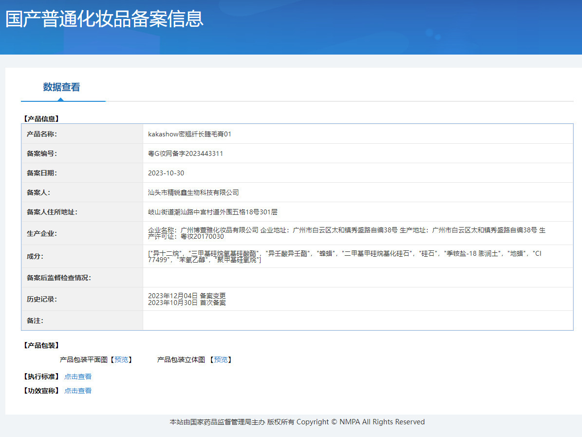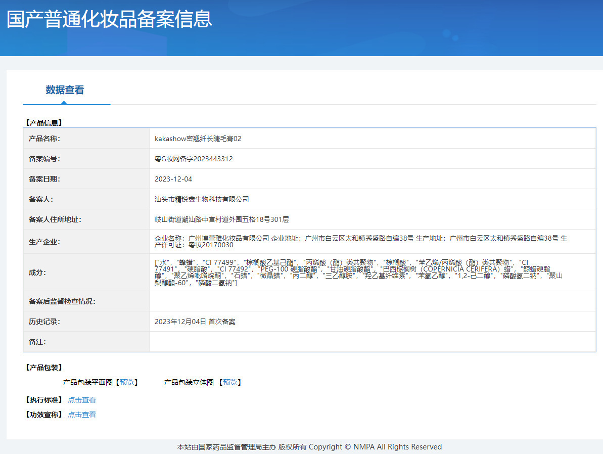 非特定化粧品届出証番号 広東Gメイクアップネットワーク準備番号 2023096323