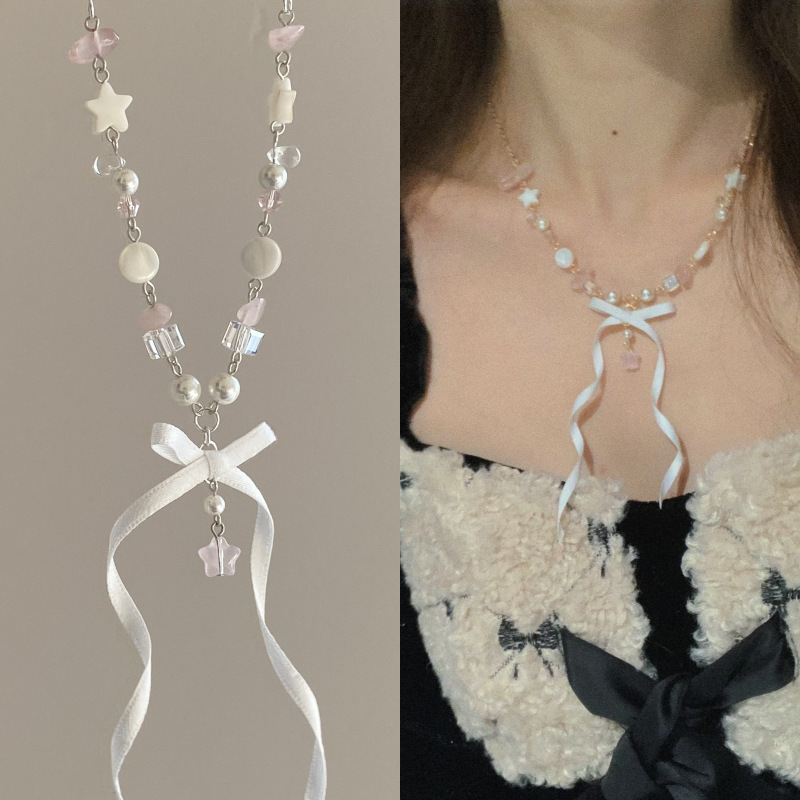 「绵梦少女」芭蕾风飘带蝴蝶结精致梦幻五角星四季甜美项链新款女