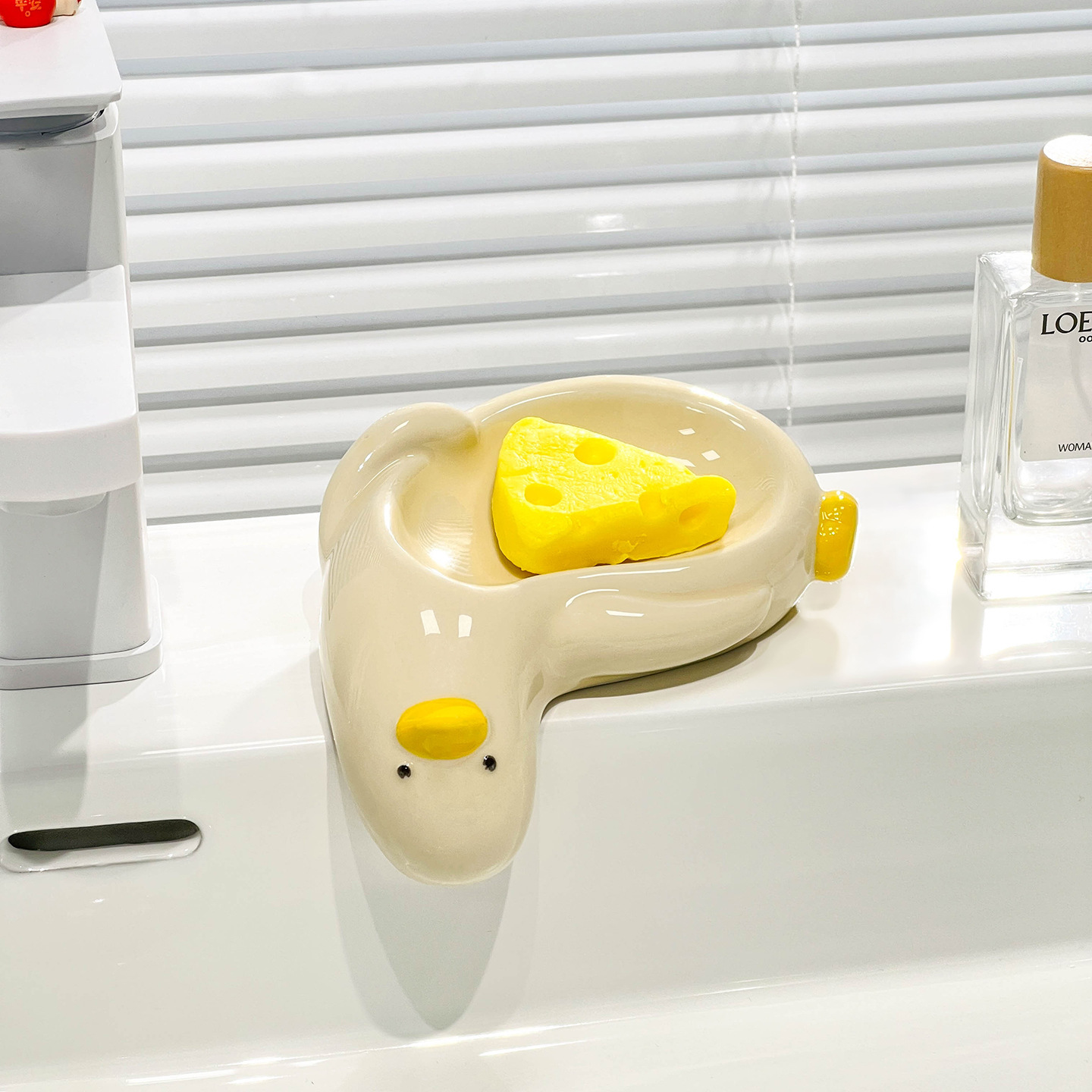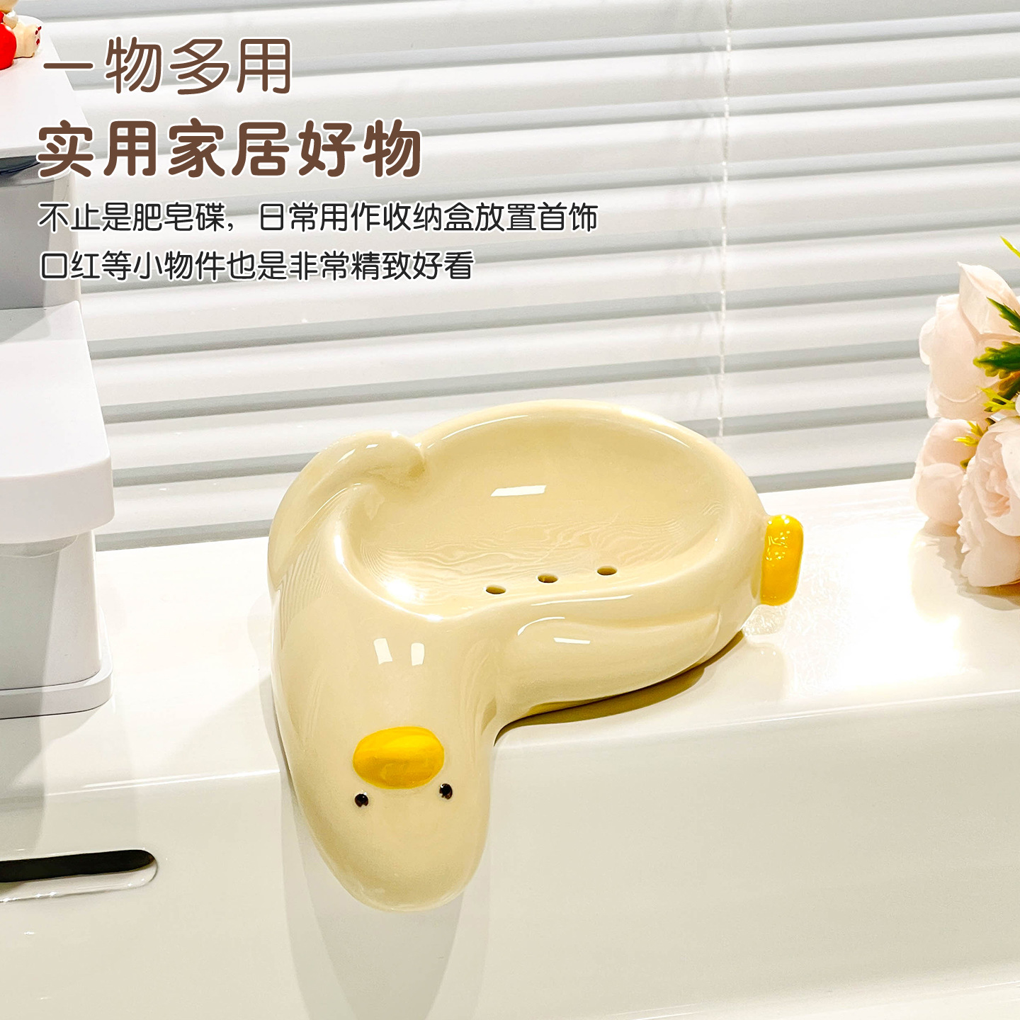 新款陶瓷肥皂盒家用台面沥水卡通鸭子皂盒卫生间洗手台创意香皂盒