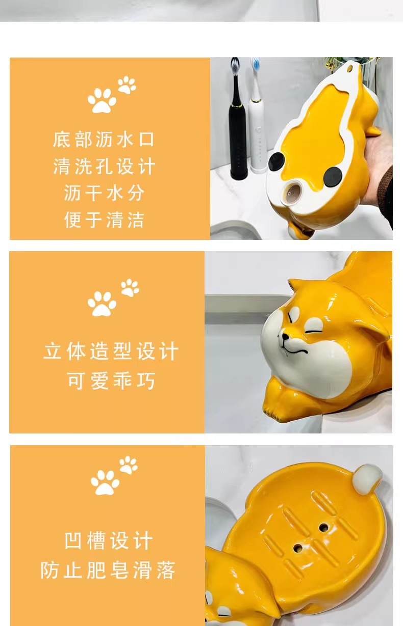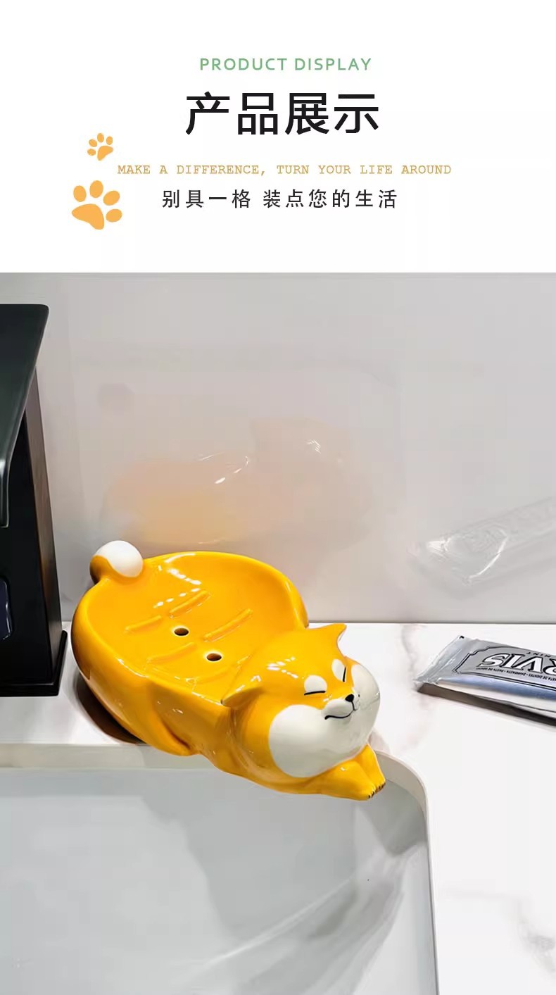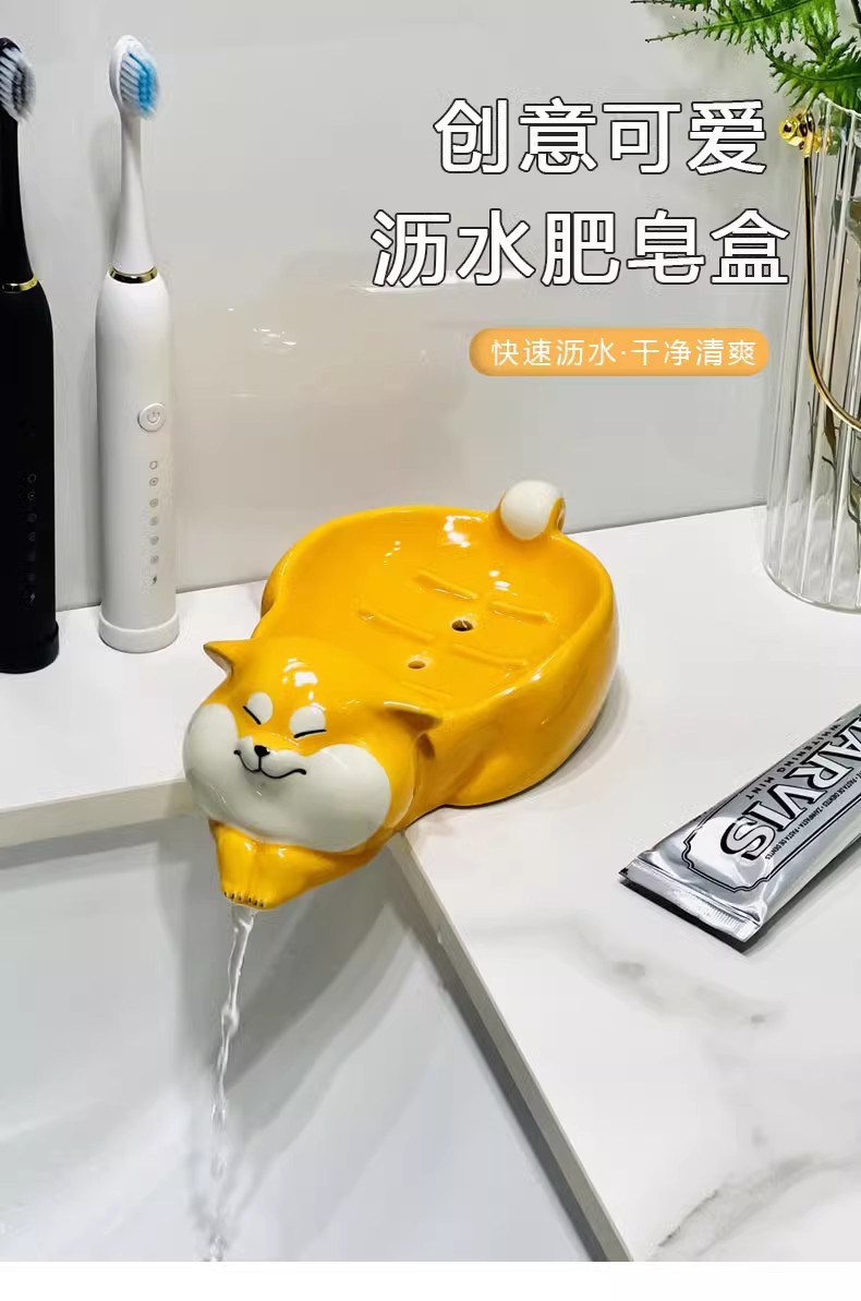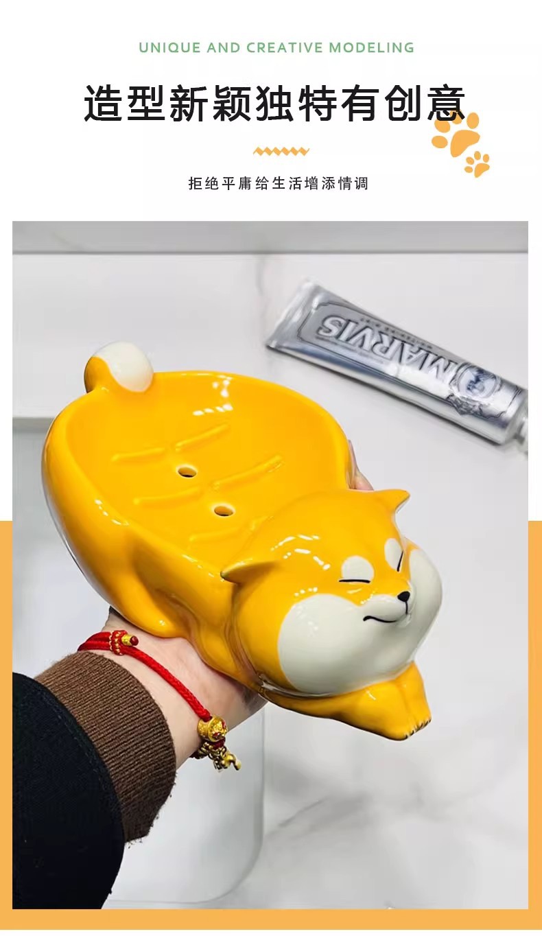 アニメのアイデア陶磁器石けん箱かわいい柴犬石けん箱棚トイレに水が溜まっていない石けん皿ホルダー