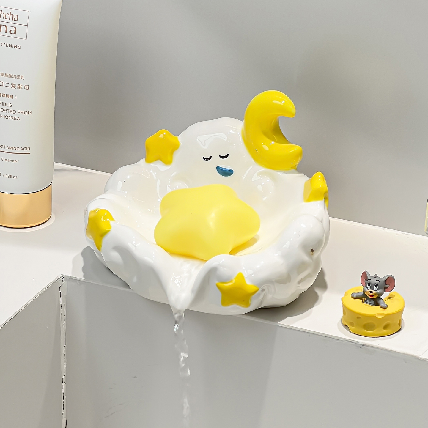 可爱星星月亮肥皂盒沥水不积水香皂盒置物架免打孔卫生间陶瓷皂碟