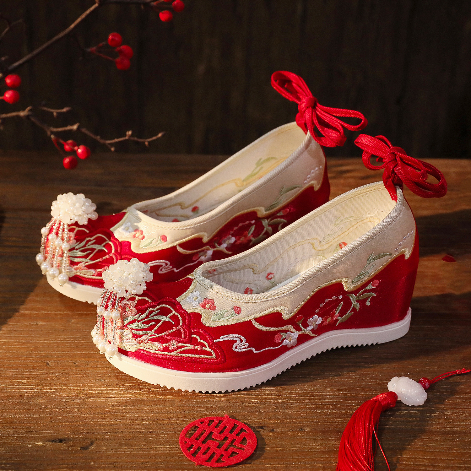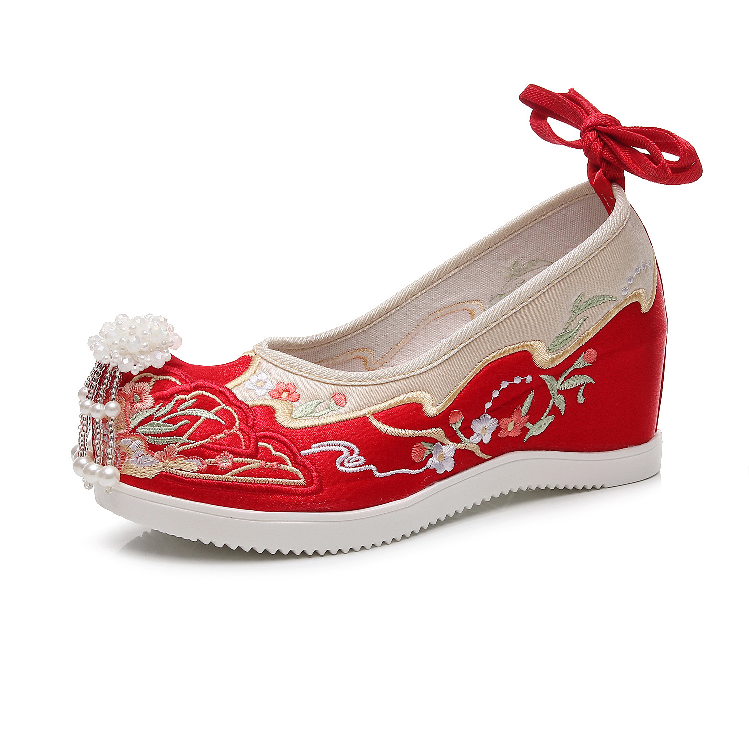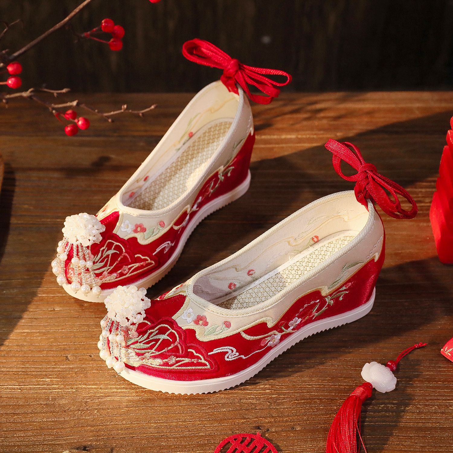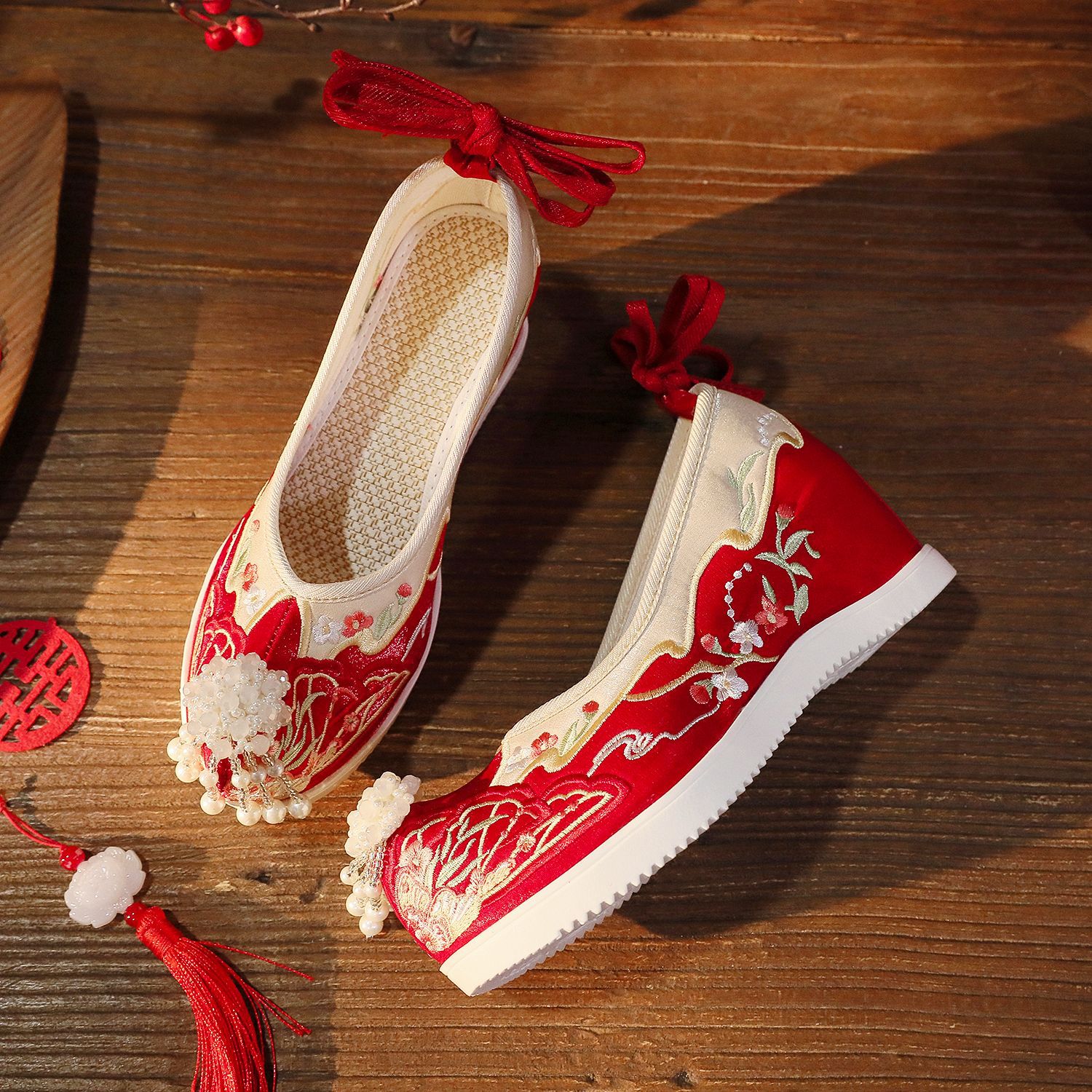 【蝶々花】春秋新作流蘇漢服靴古風刺繍靴新婦秀禾結婚靴中国式で高くなりました。