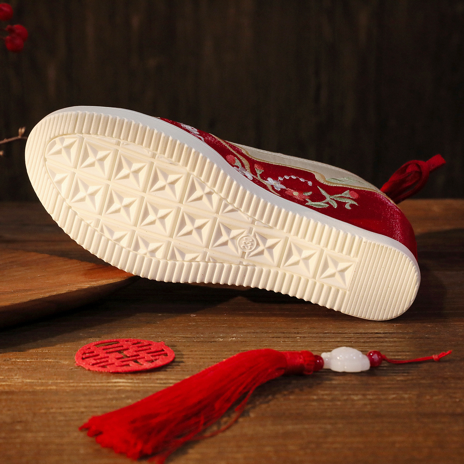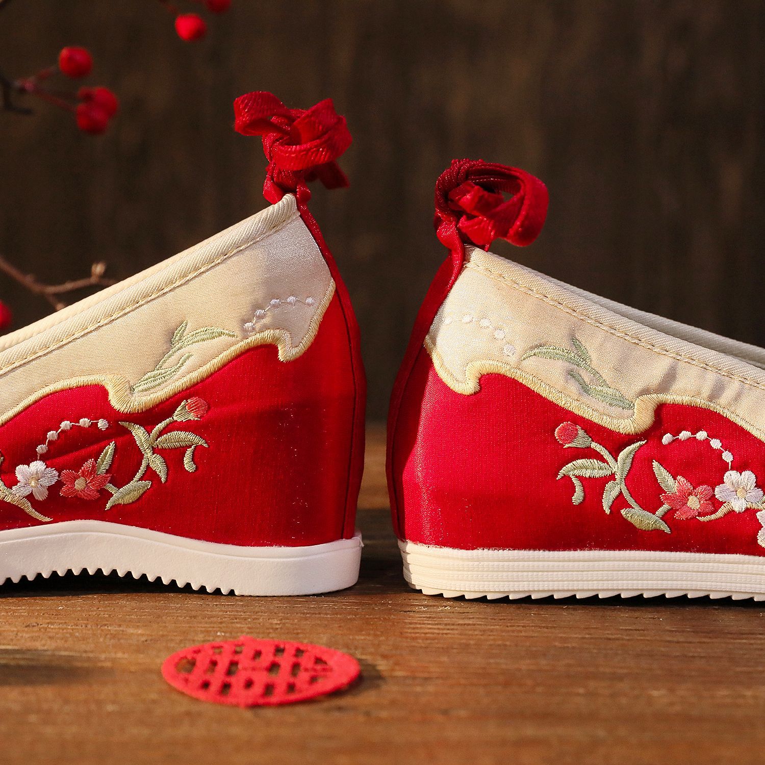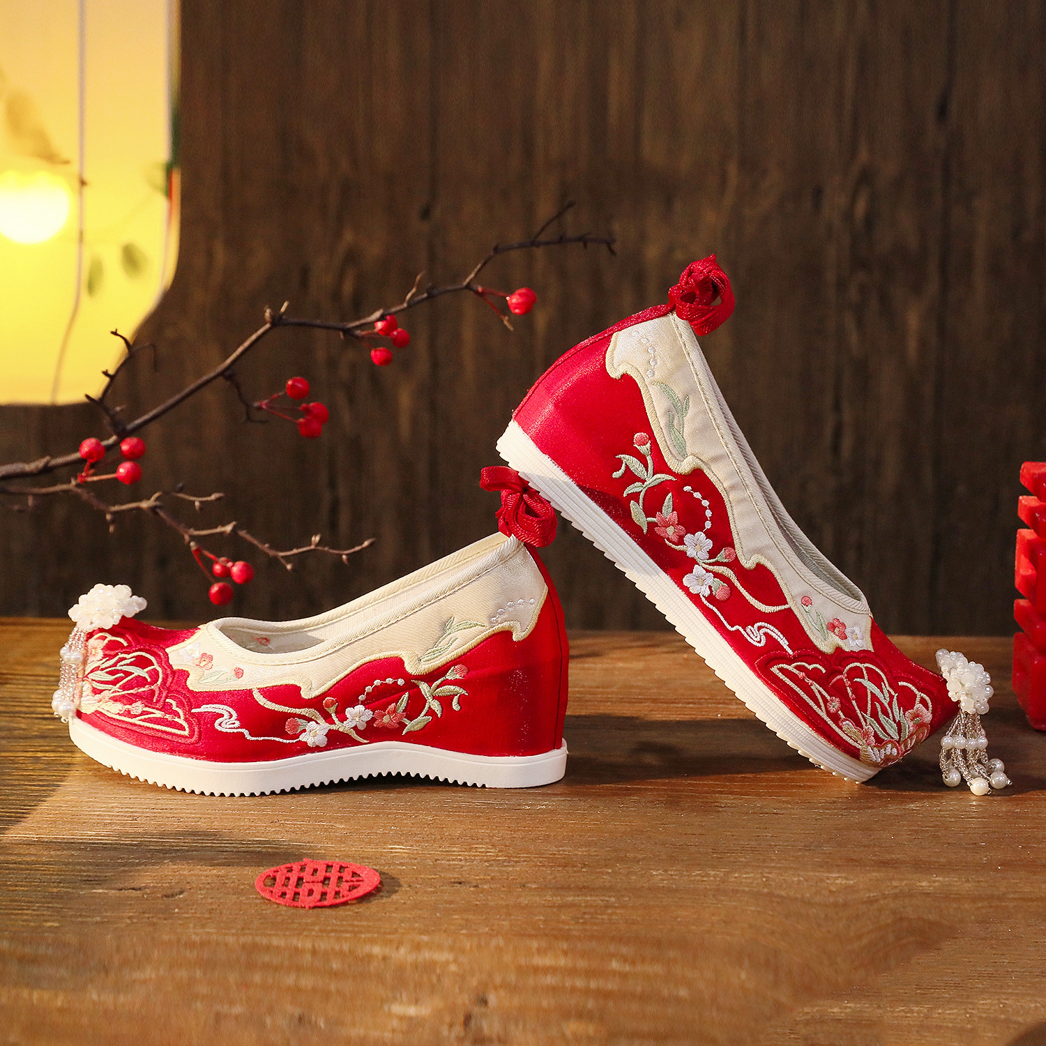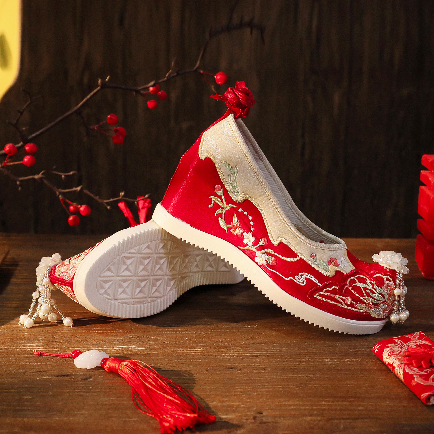 【蝶々花】春秋新作流蘇漢服靴古風刺繍靴新婦秀禾結婚靴中国式で高くなりました。