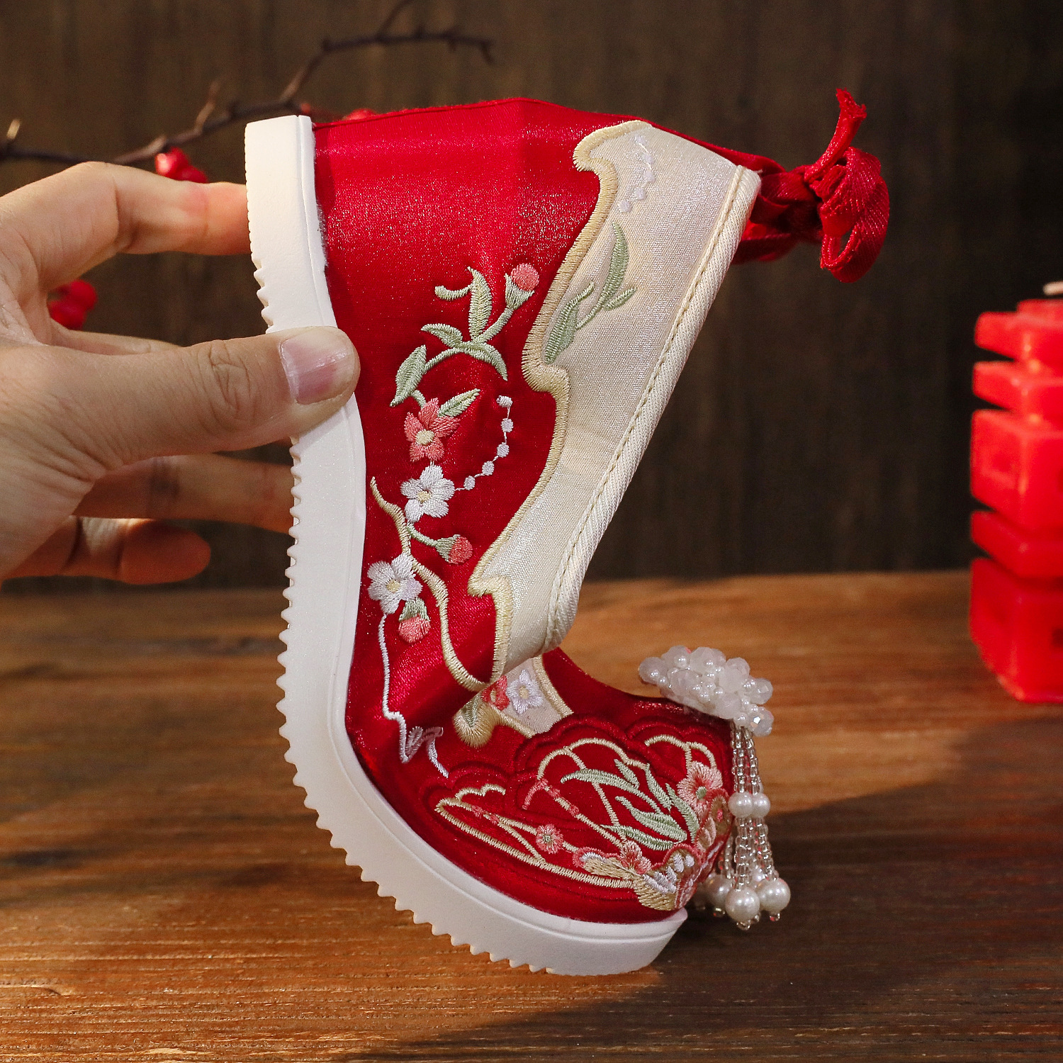 鳳来儀古風の花嫁の靴の中で高くなります。