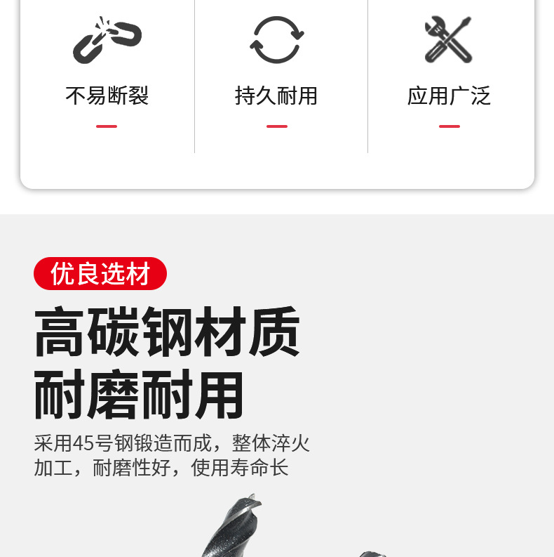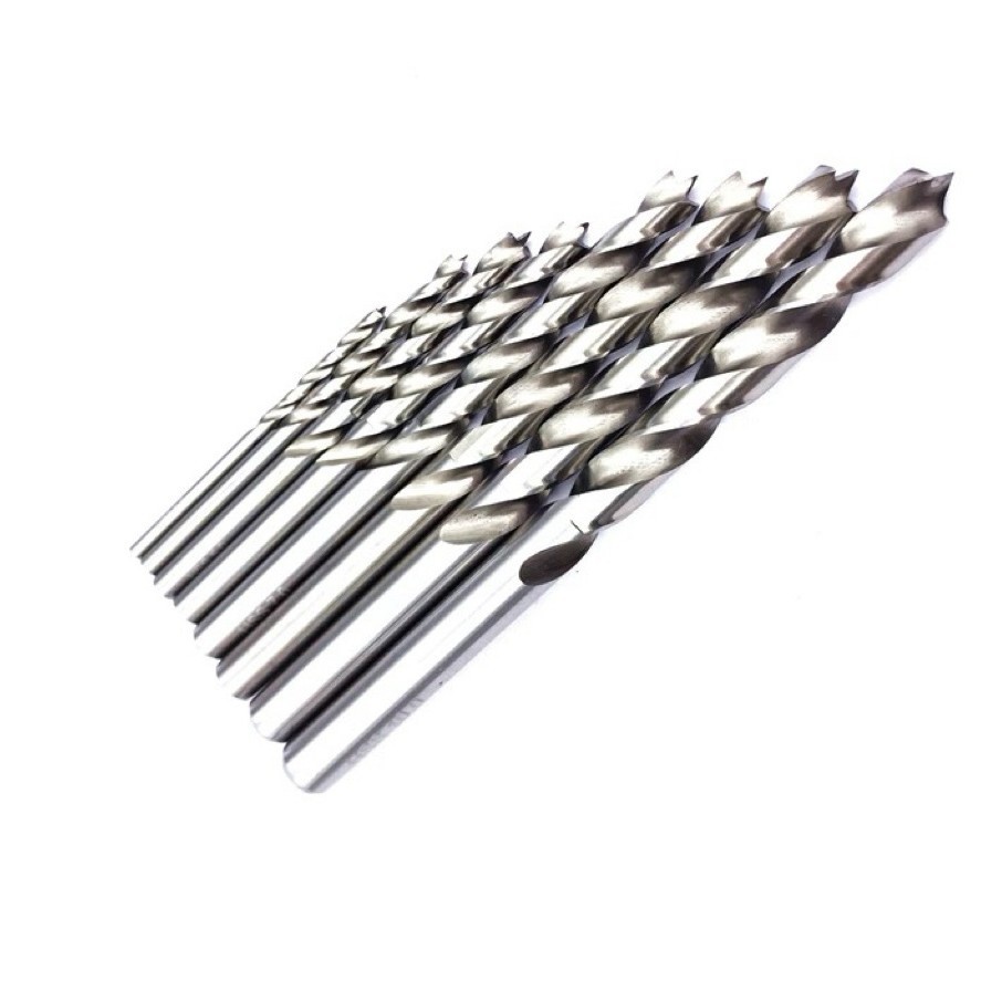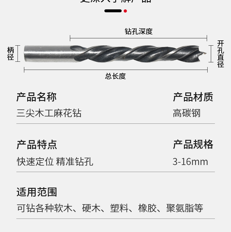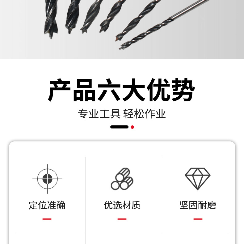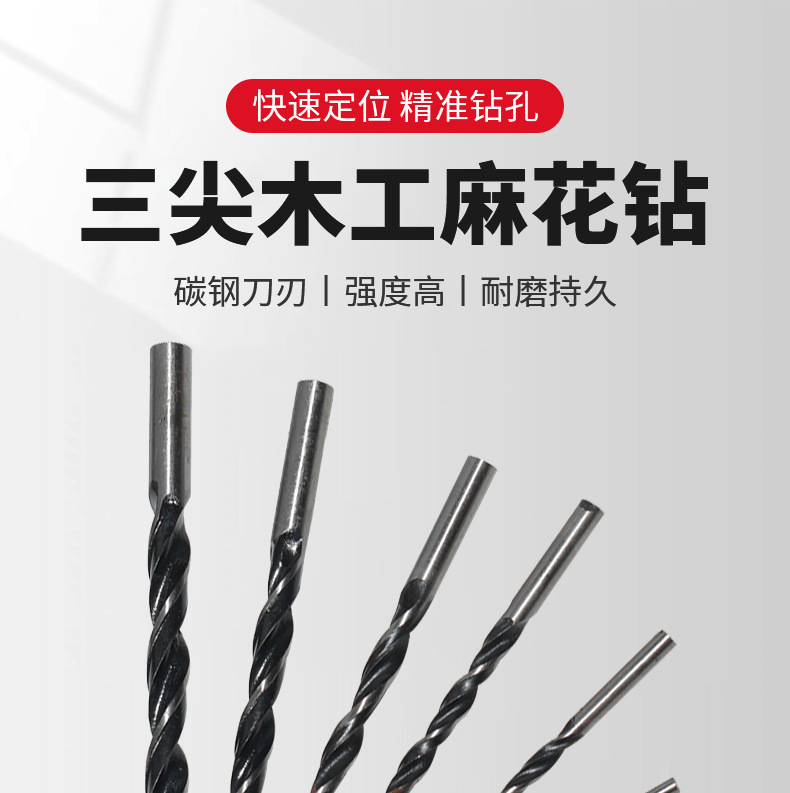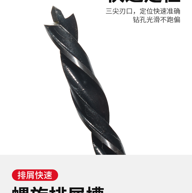 三尖木工麻花钻头3-10mm多规格圆柄木材塑料定位打孔开孔木工钻头