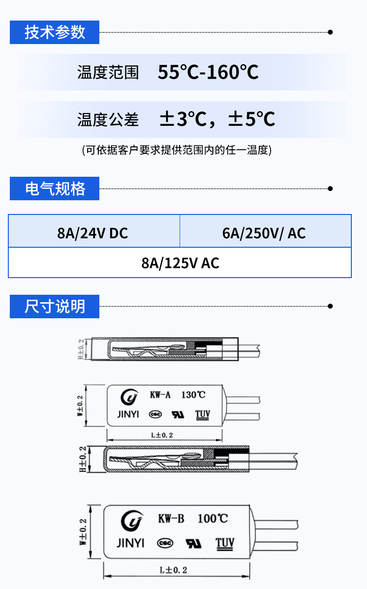 8CMサーマルプロテクターは、センサータ2-16Aモーターの50-180度温度制御スイッチに代わるもので、高精度の温度制御を実現します。