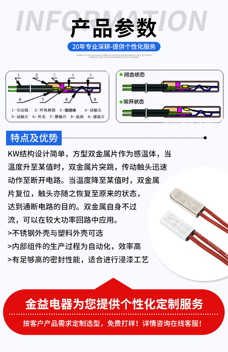 8CM/6AP/3MP/KW 熱過負荷保護装置 カーテンモーター過電流 50-180度温度制御スイッチ 高温耐性