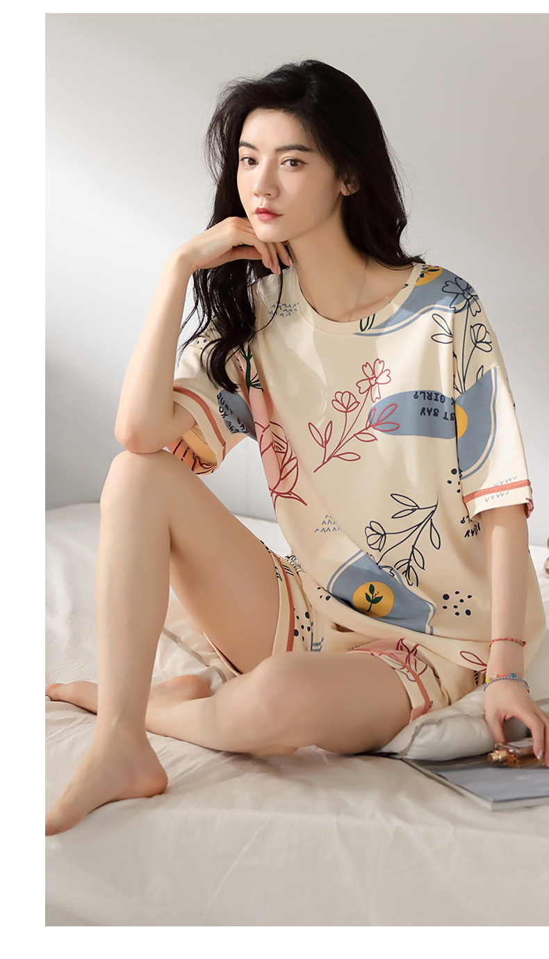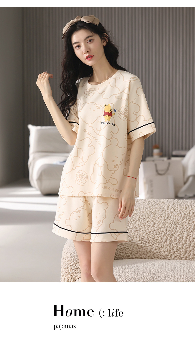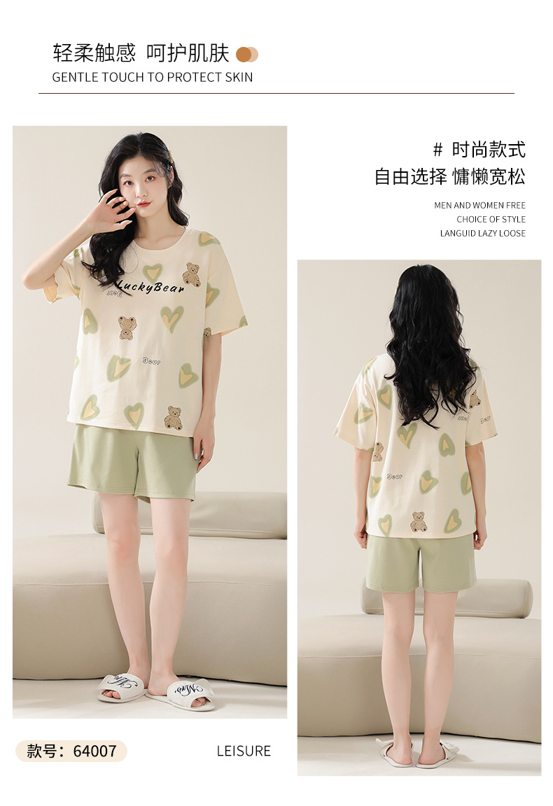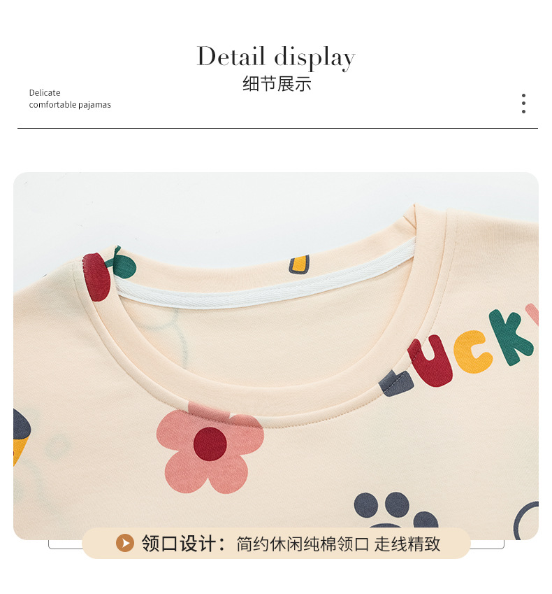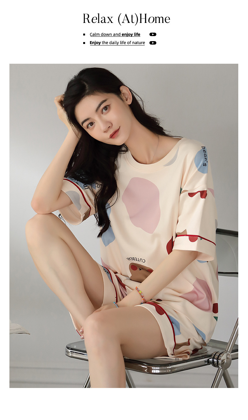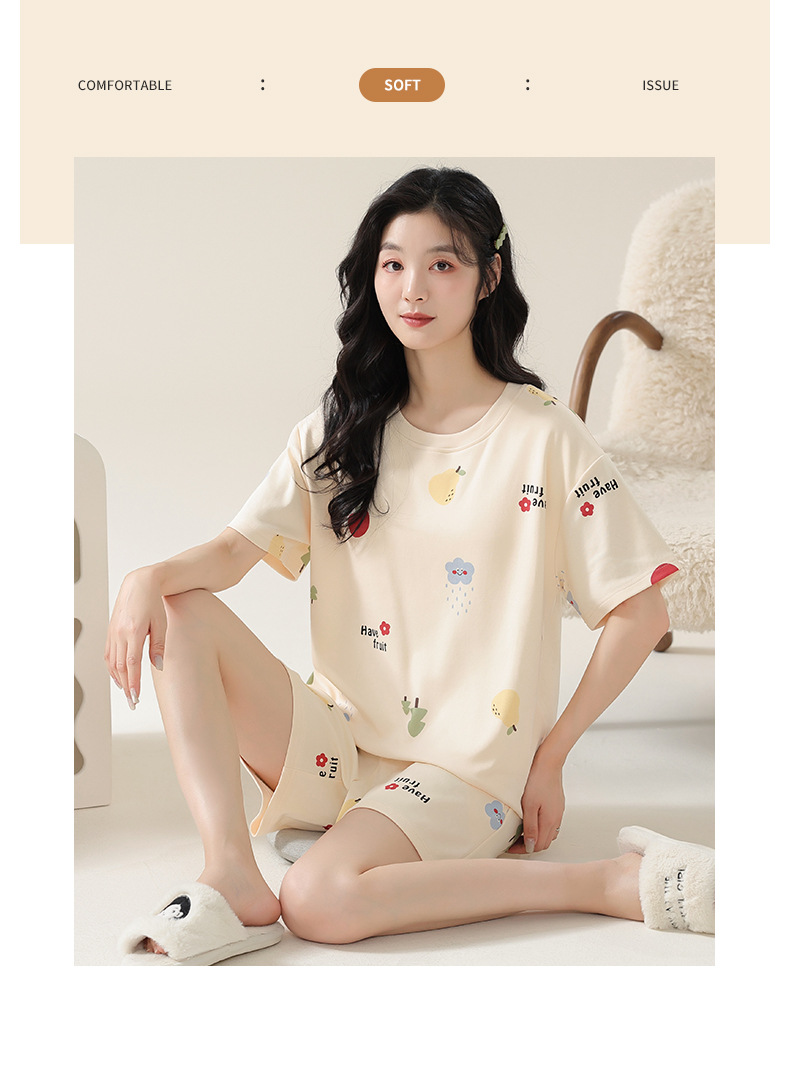 純綿パジャマ女性夏の薄い丸首漫画少女学生は半袖パジャマ綿の家庭服を着ることができる