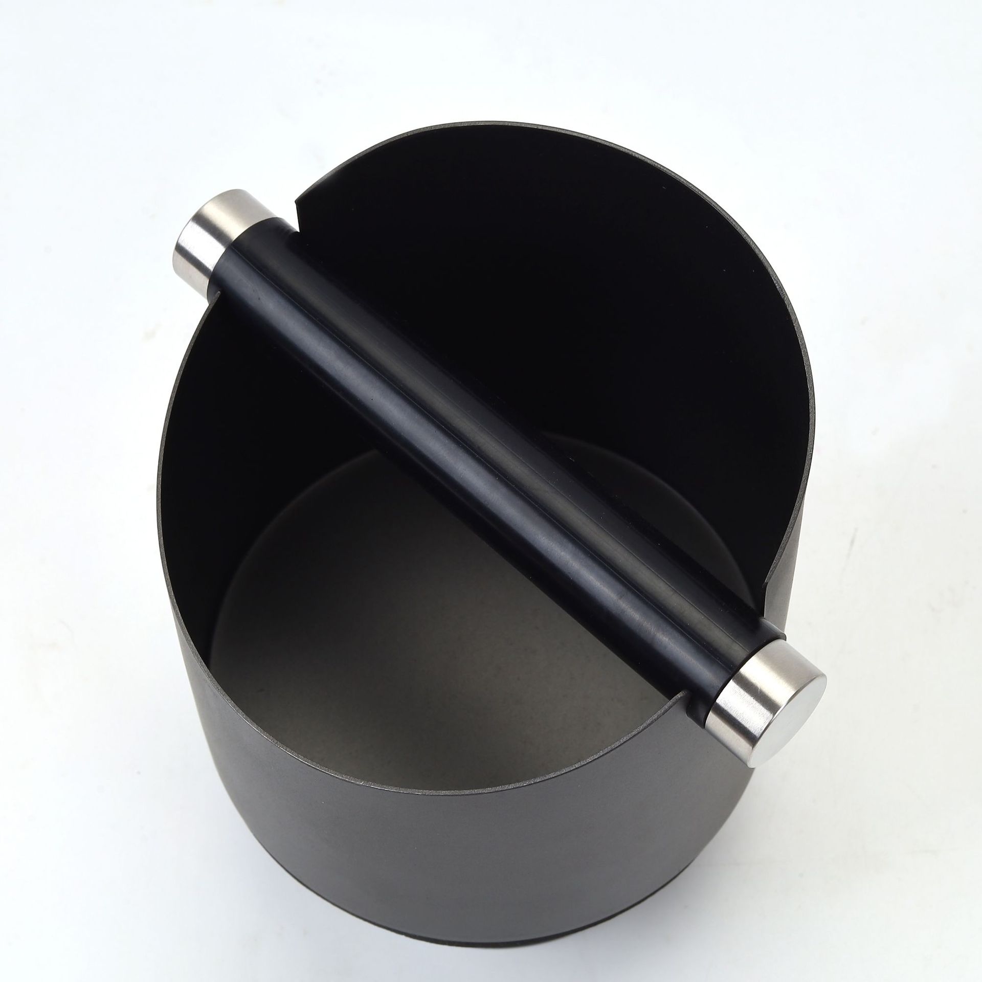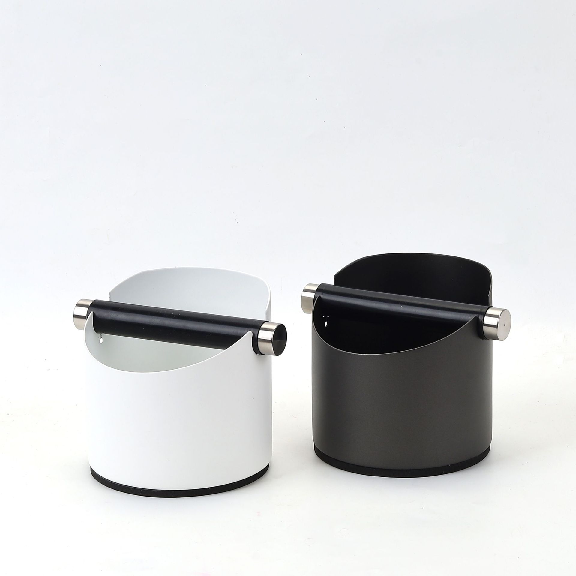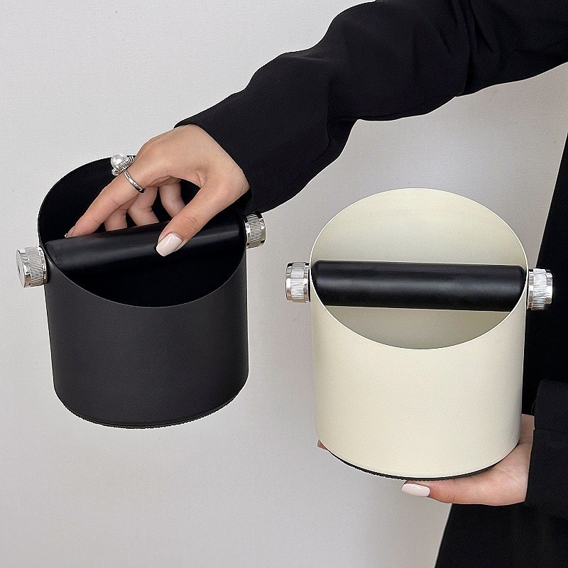跨境热销不锈钢咖啡渣桶吧台圆形意式咖啡机敲渣桶黑色咖啡粉渣盒