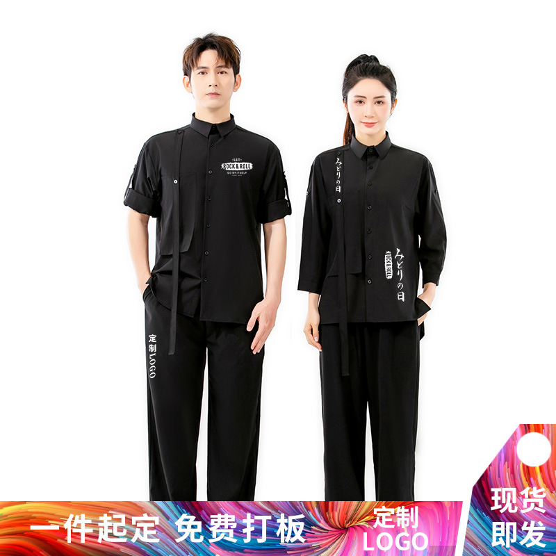 和風ゆったり個性美容室作業服美容室アシスタント技術者作業服和風トレンドショップバープリントロゴ