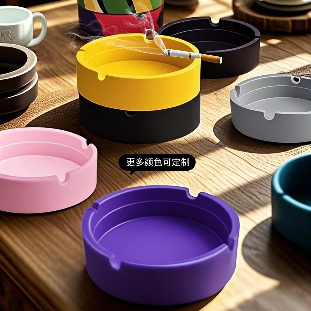 Amazon スポット印刷可能なロゴ、落下を恐れないシリコンラウンド灰皿、高温耐性、お手入れが簡単な灰皿とタバコカップ