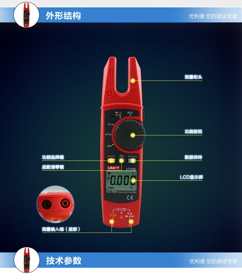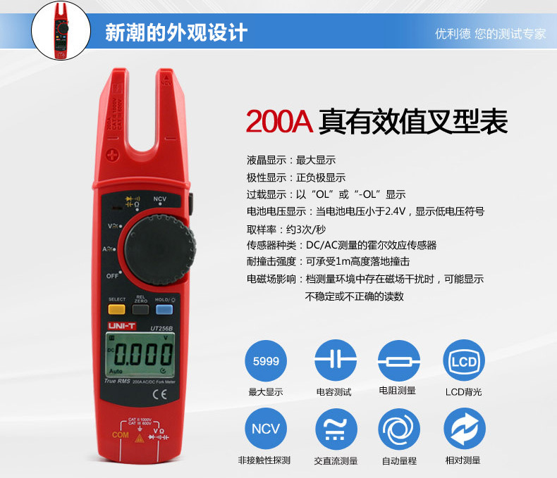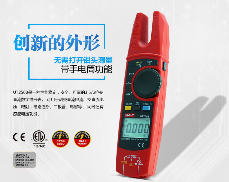 优利徳UT256B交流直流フォーク型クランプ型表対外貿易金y型開口電気工クランプ誘導電圧計