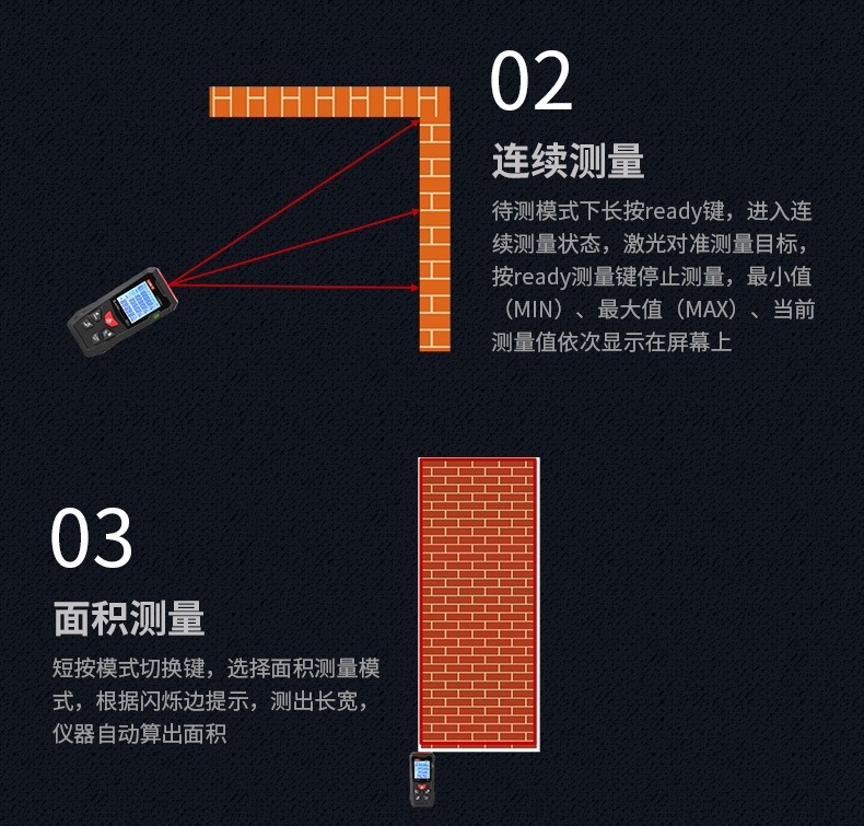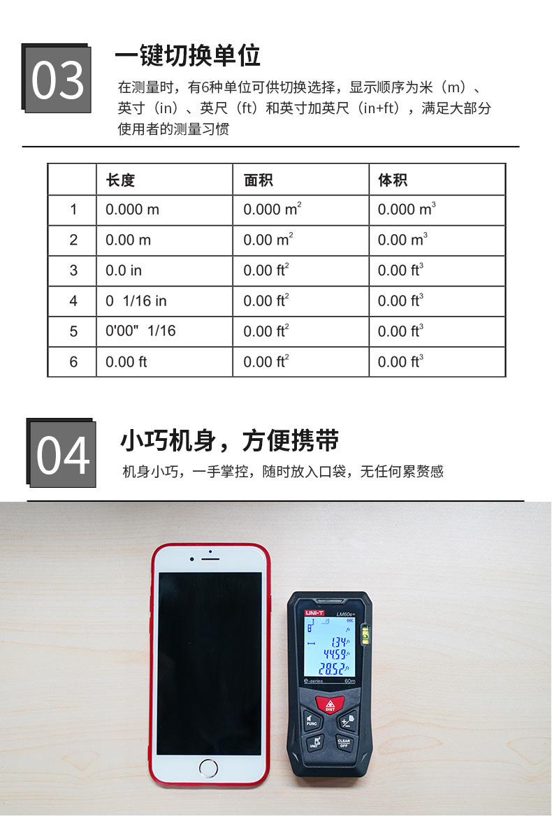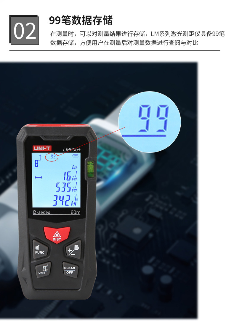 ユリッドLM60eデジタルディスプレイレーザー距離計高精度手持ち赤外線電池定規距離測定室計