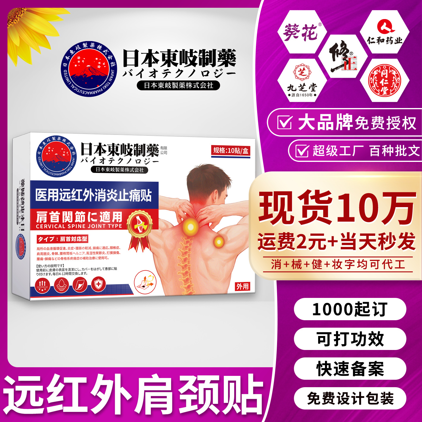 日本东岐制药医用远红外消炎止痛贴颈椎型穴位贴颈椎病肩周膏药贴